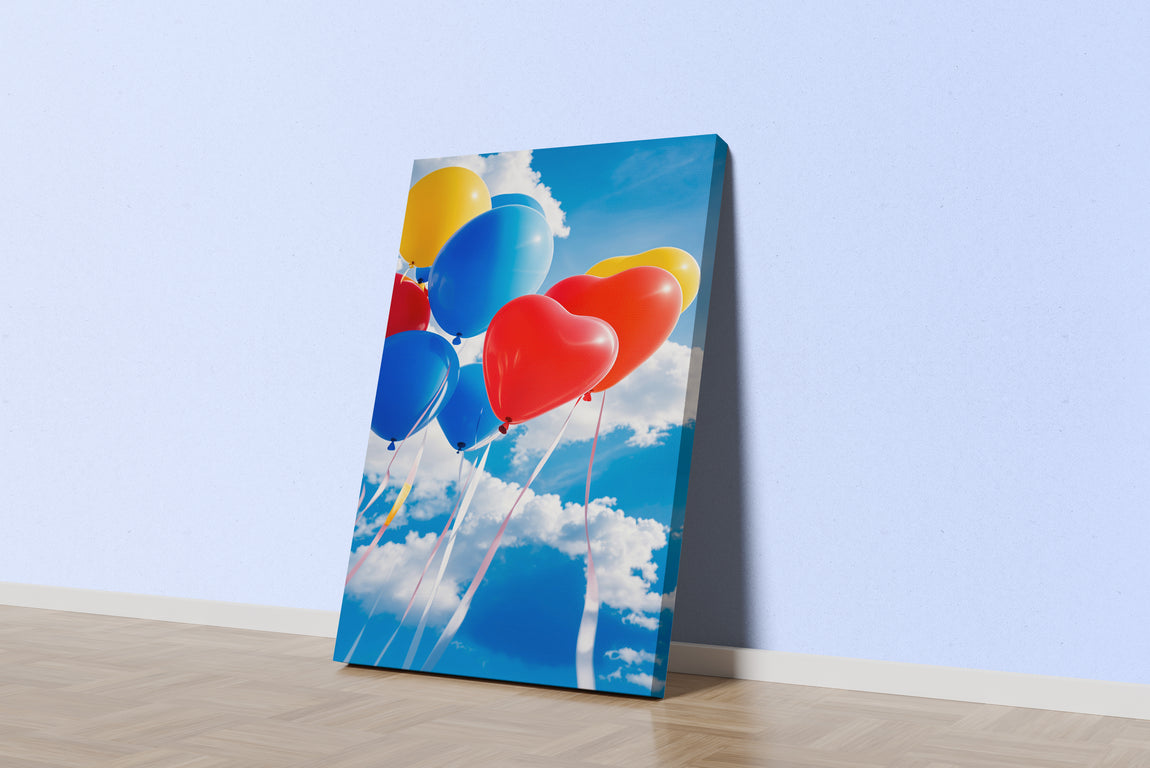 ai creation, different shaped balloons floating in the sky, ai art, art, kanvas tablo