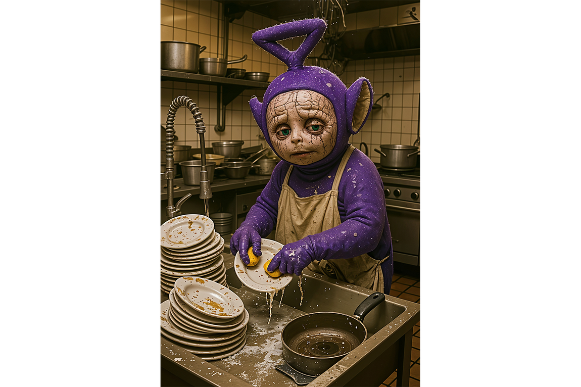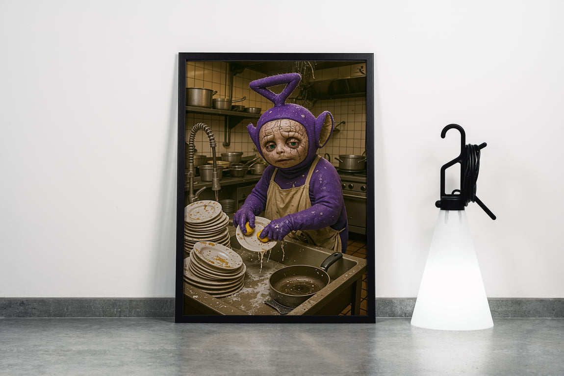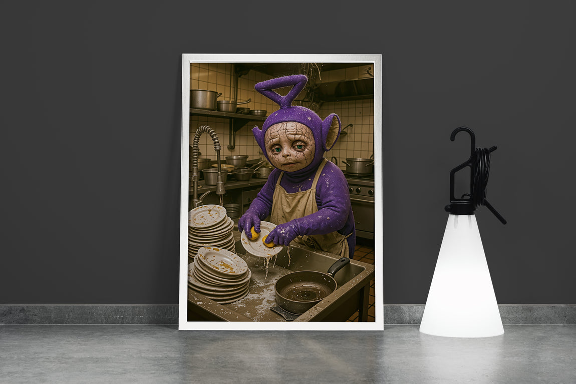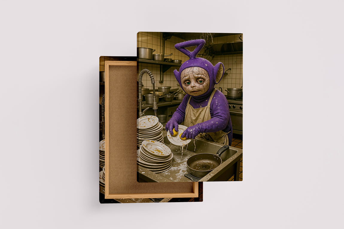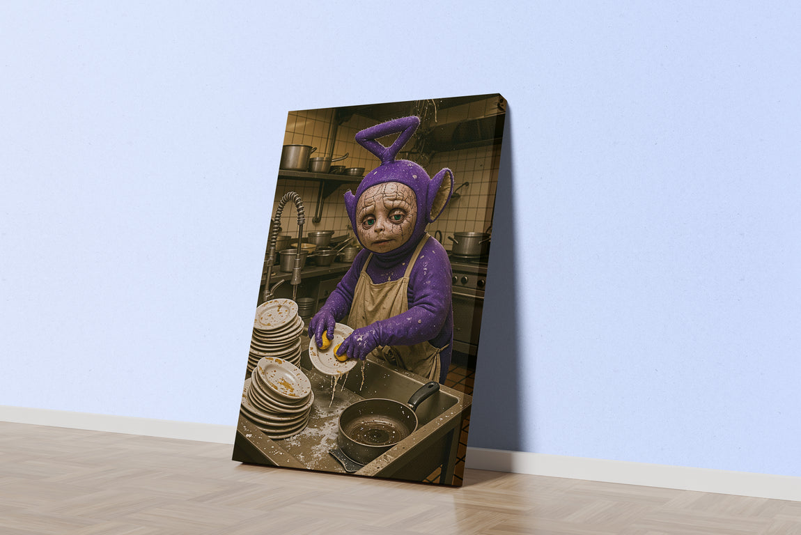 ai creation, dishwashing teletubbies model 1, ai art, art, kanvas tablo