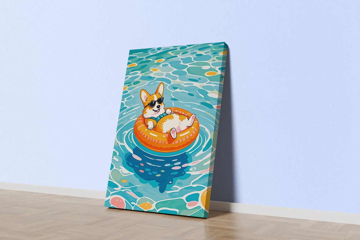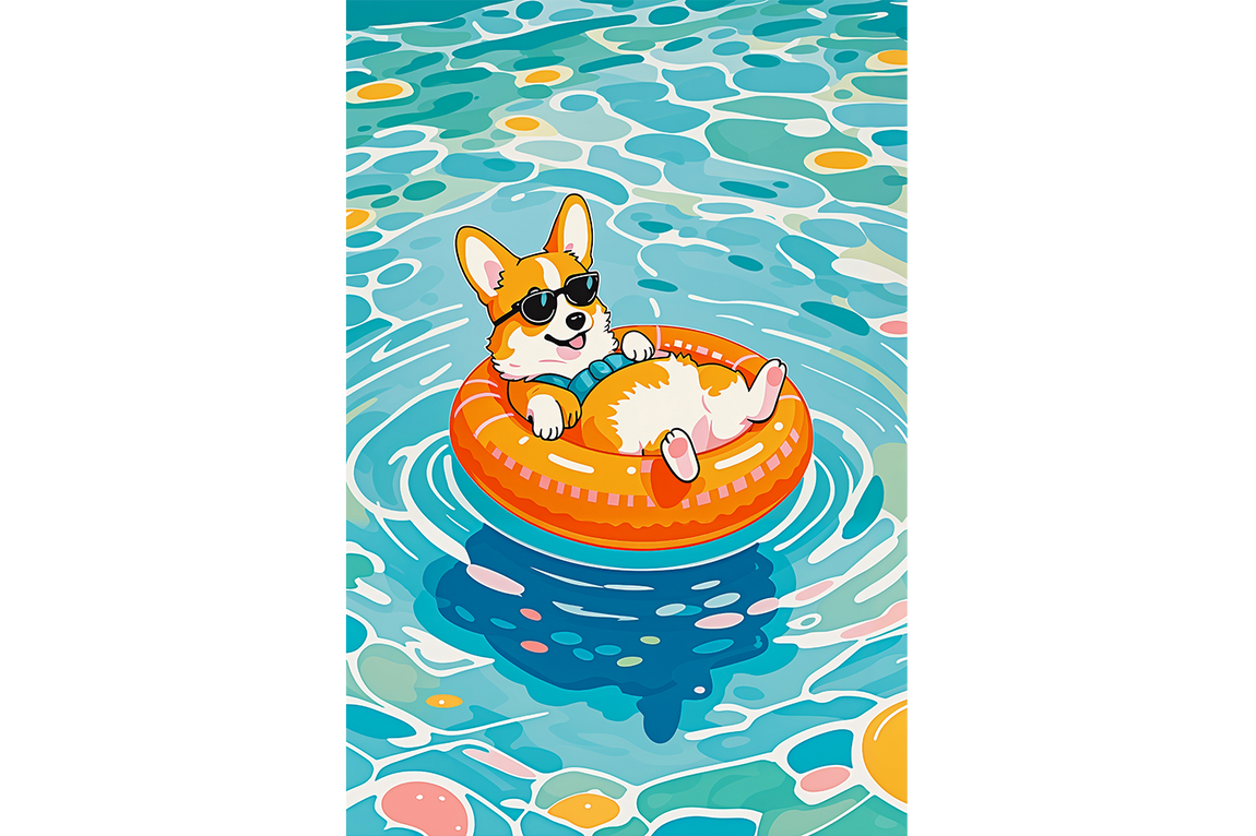 ai creation, fox with glasses lying in the pool, ai art, art, kanvas tablo