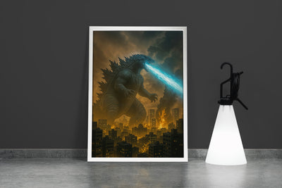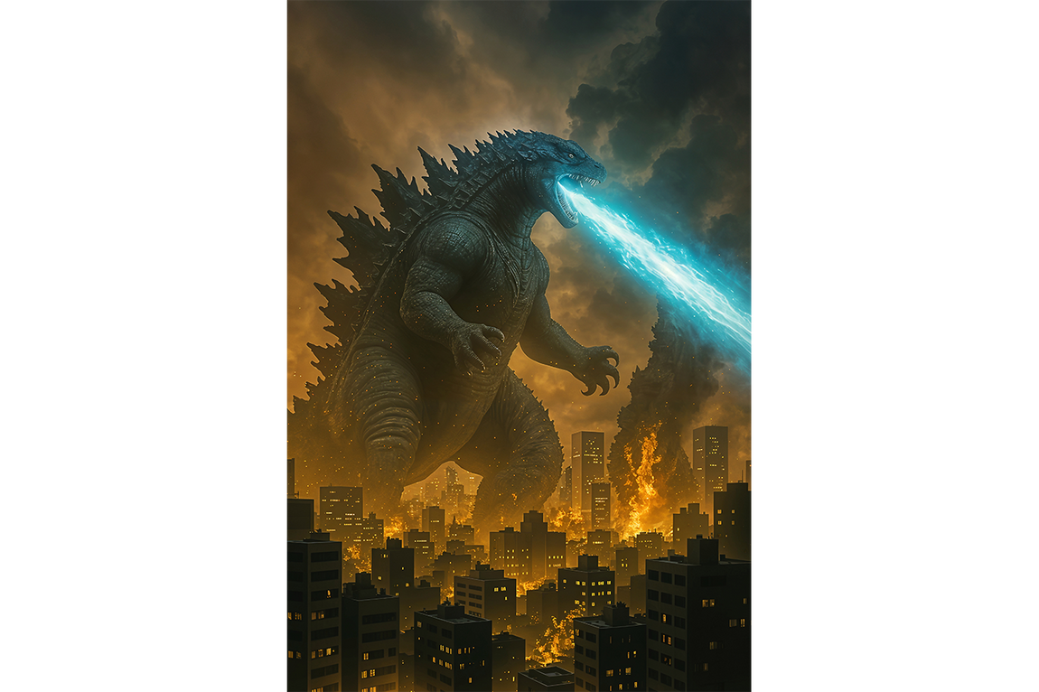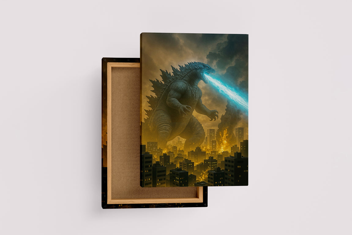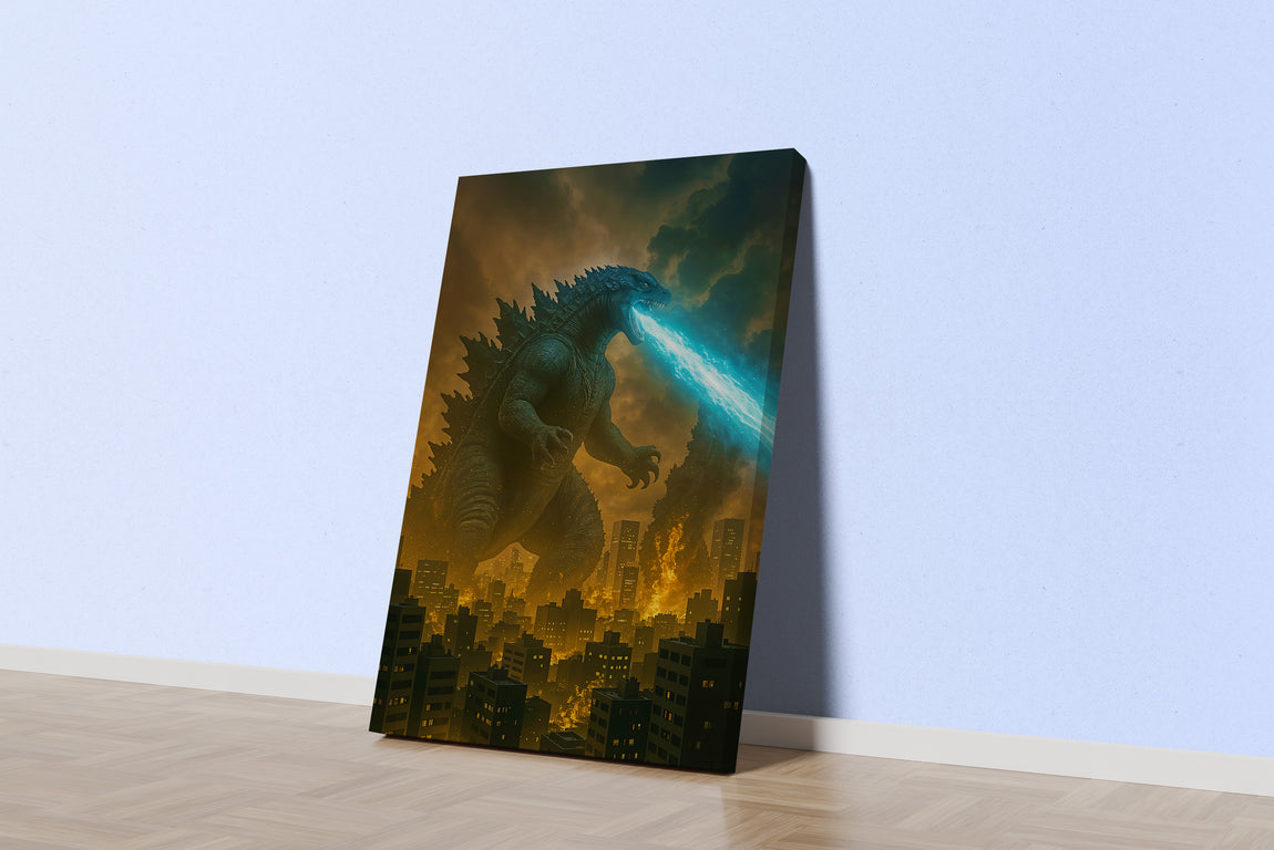 ai creation, godzilla attack, ai art, art, kanvas tablo