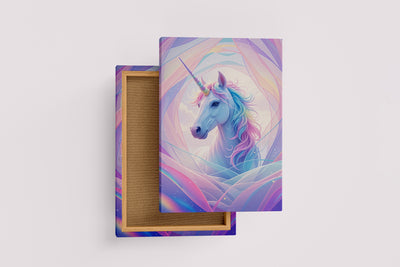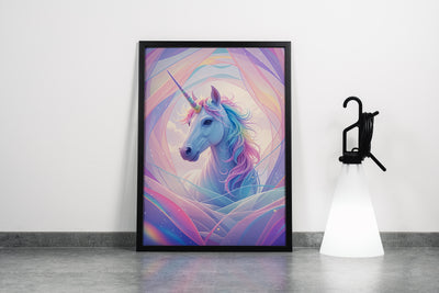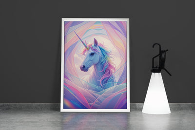 ai creation, happy looking unicorn on a soft white mix, ai art, art, kanvas tablo