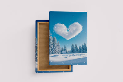 ai creation, heart formed by clouds, snow themed, ai art, art, kanvas tablo