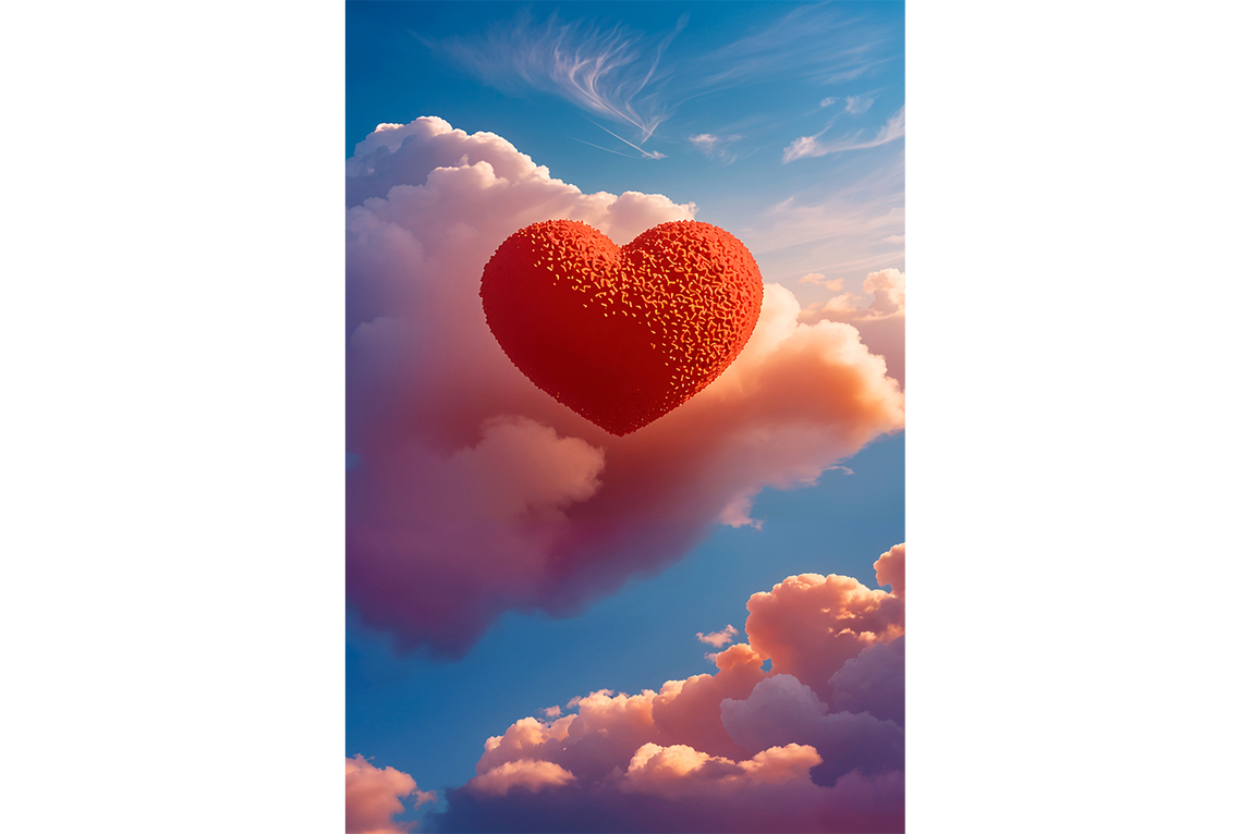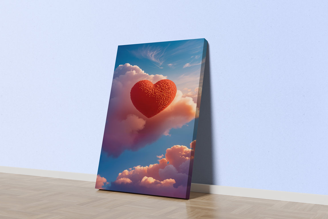 ai creation, huge red heart among the clouds, ai art, art, kanvas tablo