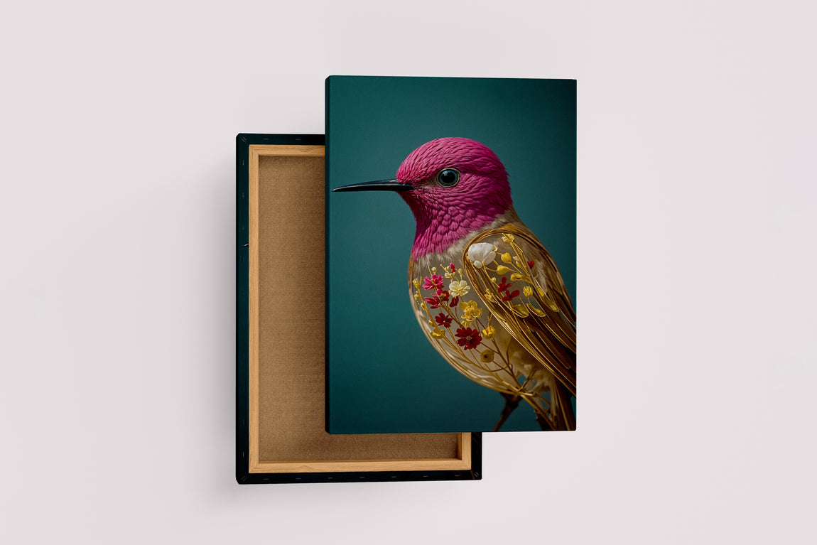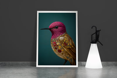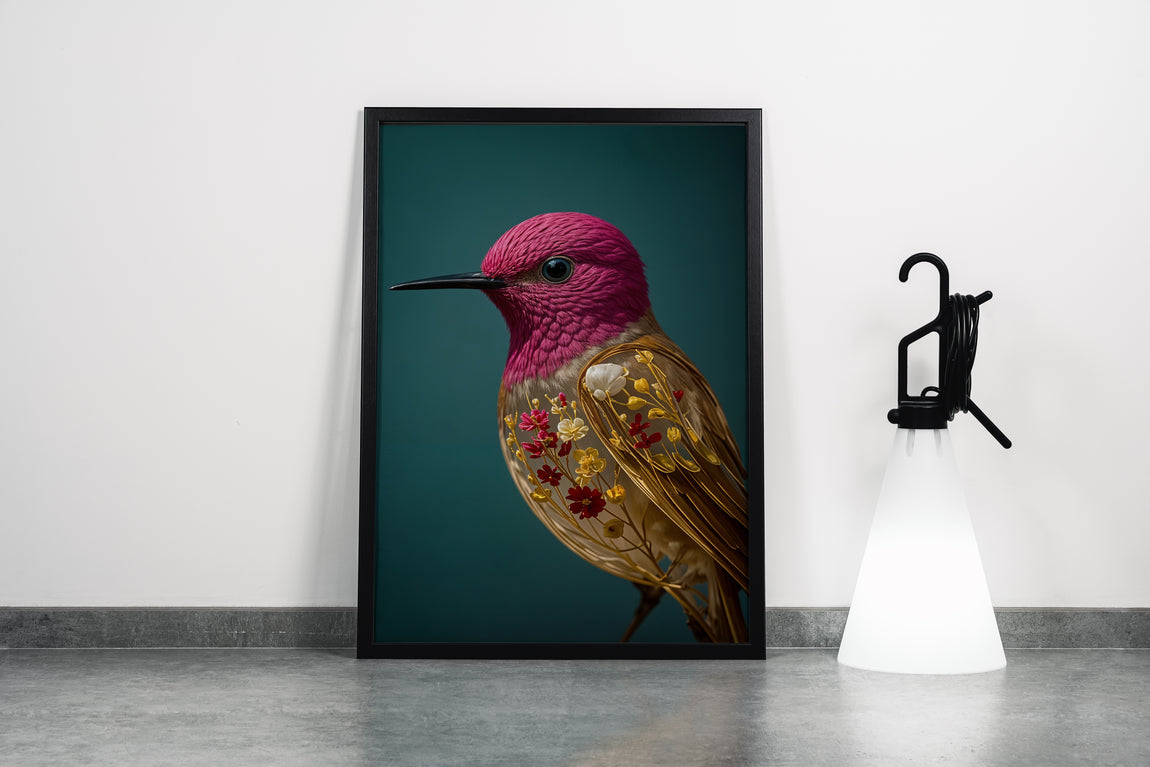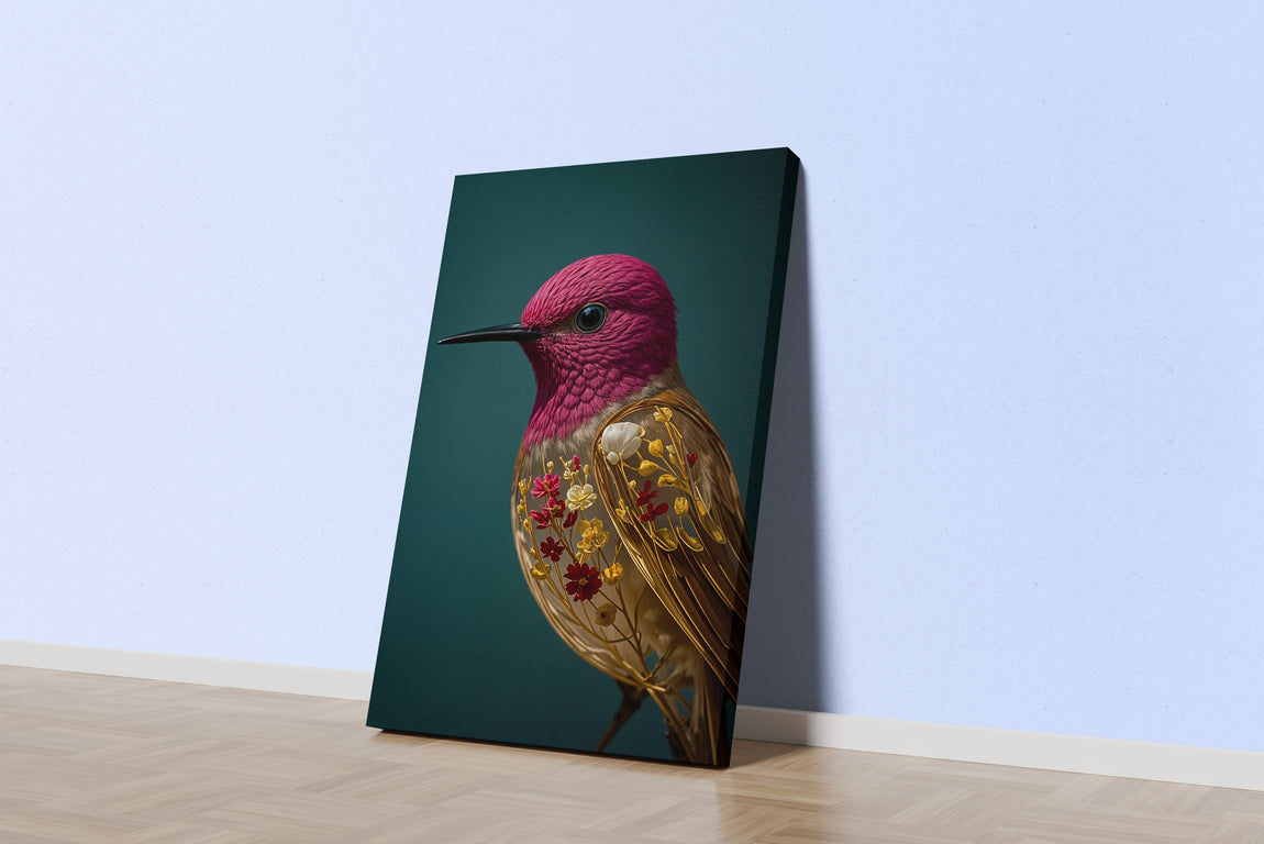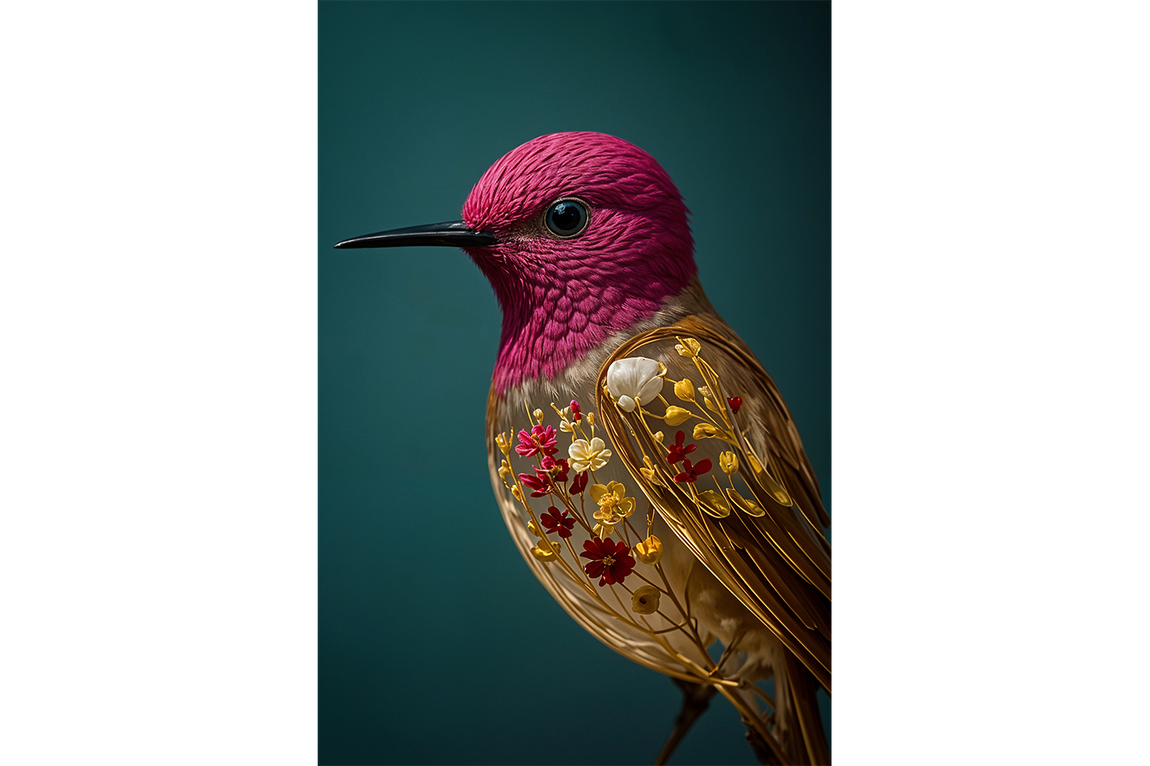 ai creation, hummingbird with flower designs, ai art, art, kanvas tablo