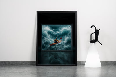 Kasvetli fırtınalı dalgalar arasında cesurca kürek çeken bir kayıkçının dikkat çekici görseli, yüksek kaliteli baskı tekniğiyle özenle yansıtıldı. Canlı renkler ve detaylı işçilik sayesinde her bakışta derinlemesine bir hikaye ve heyecan hissi sunar. Evinize ya da çalışma alanınıza enerji ve hareket katacak bu baskı, suyun gücünü ve dayanıklılığı simgeliyor. Zarif yapısı, duvar dekorasyonunuza estetik ve dinamik bir dokunuş getirir.