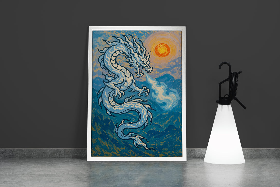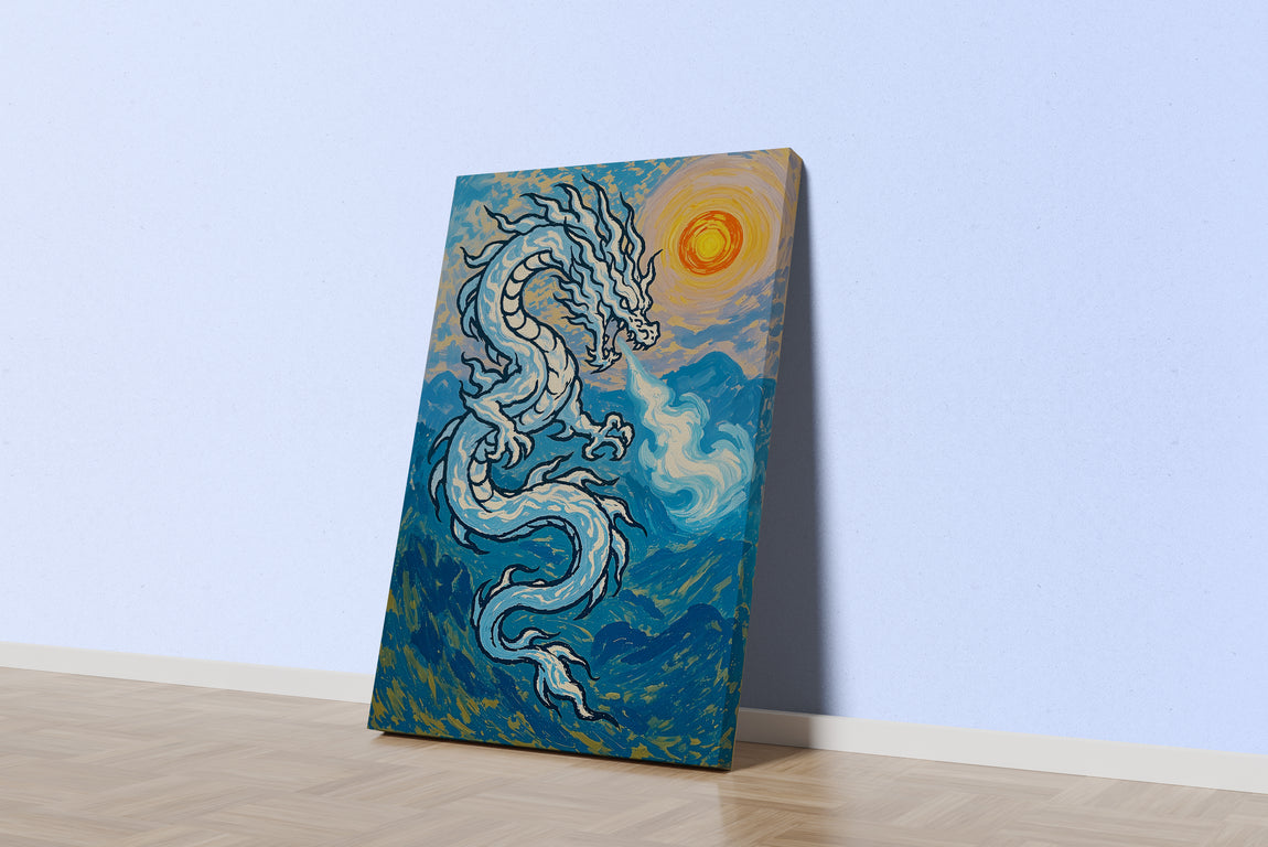 Mavi tonların hakim olduğu bu baskı, zarif bir ejderhanın detaylarını özenle yansıtıyor. Kaliteli kanvas üzerinde canlı renklerle hazırlanmış olup, dekorasyonunuza sofistike ve modern bir dokunuş katacak. Dayanıklı materyali sayesinde uzun ömürlü kullanım sağlar ve şık duruşu ile her ortamda dikkat çeker.