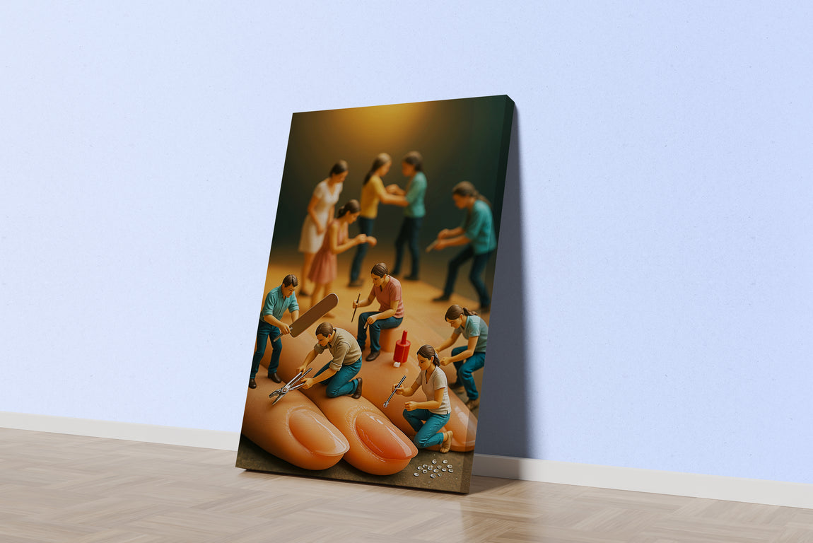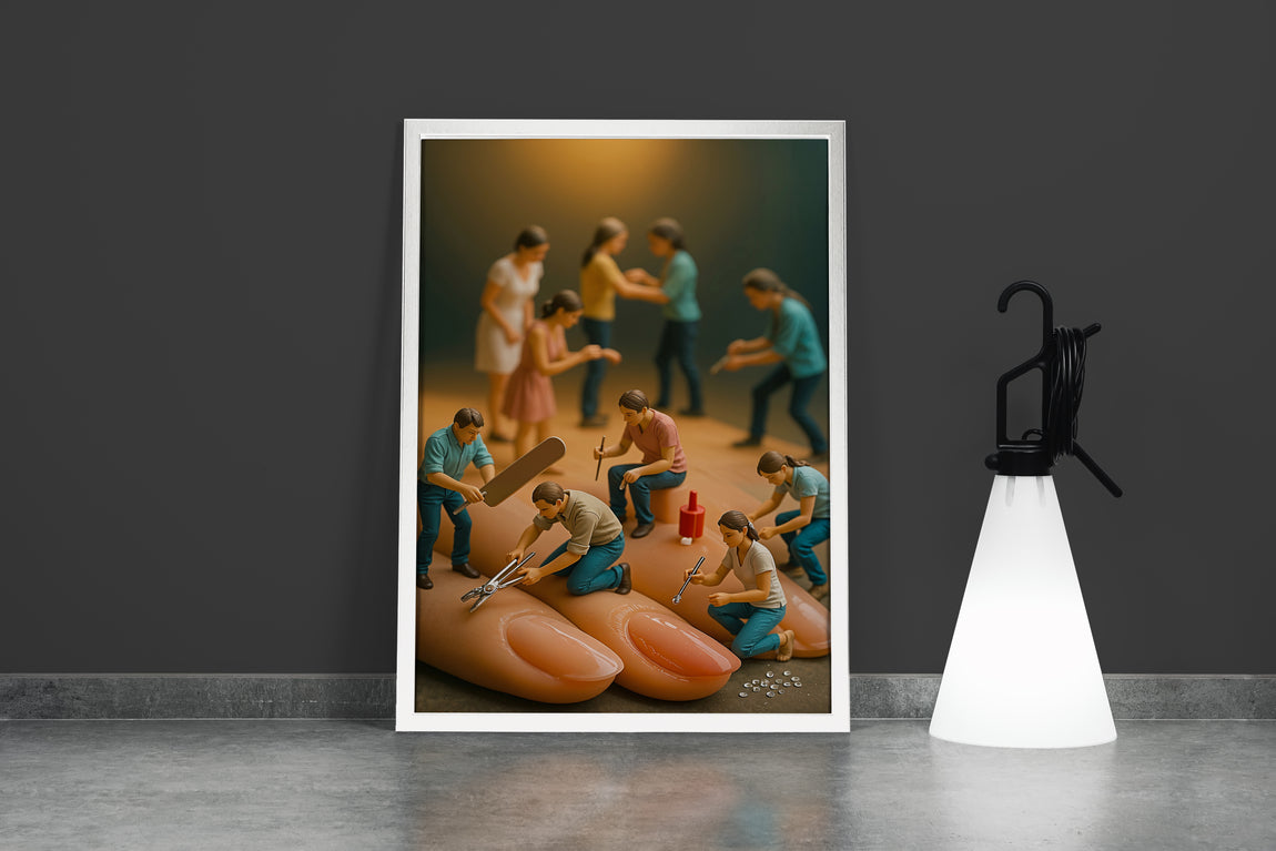 ai creation, miniature nail workers, ai art, art, kanvas tablo