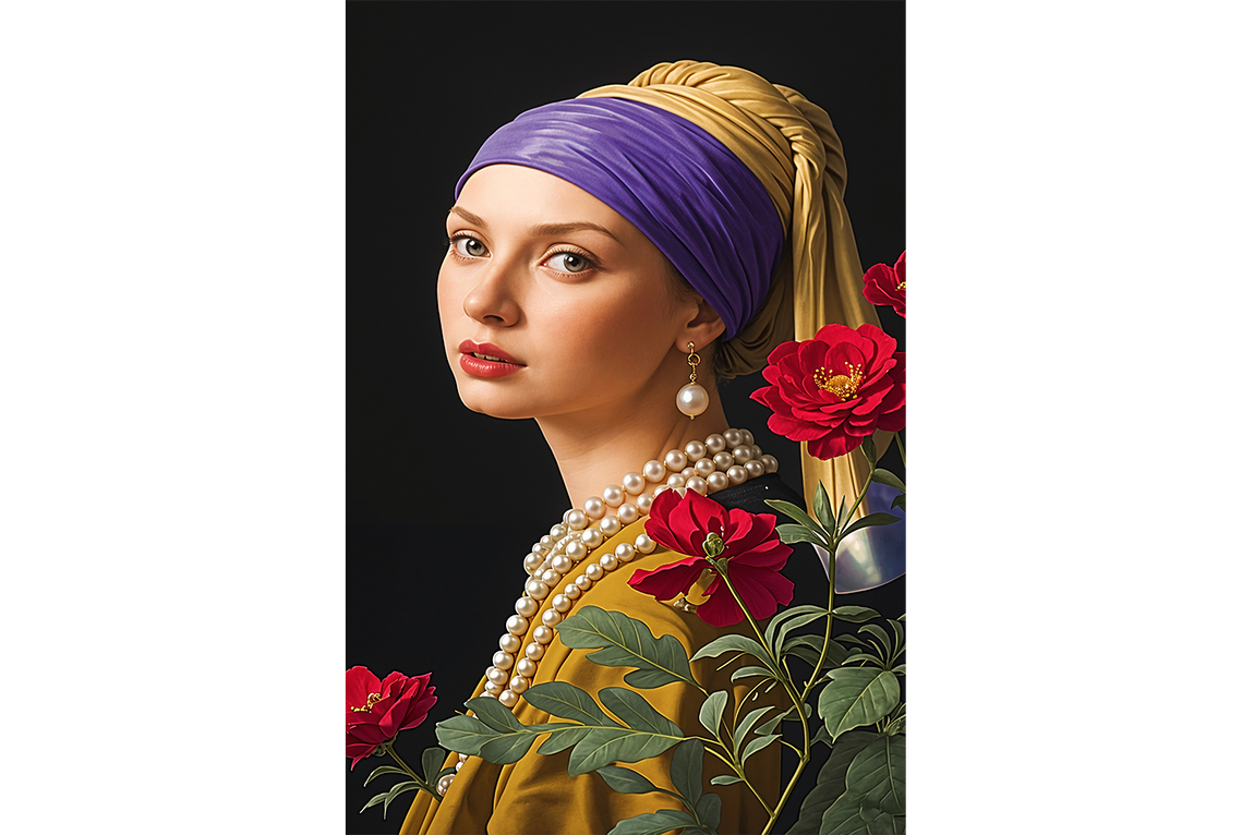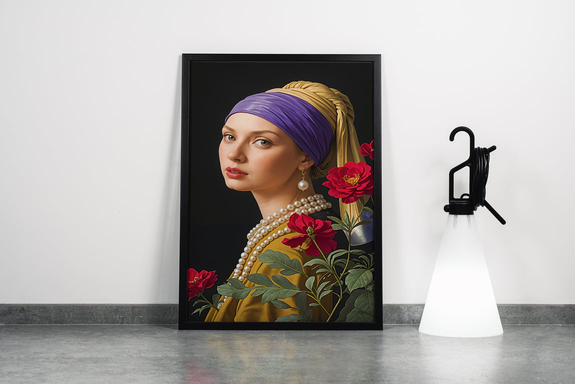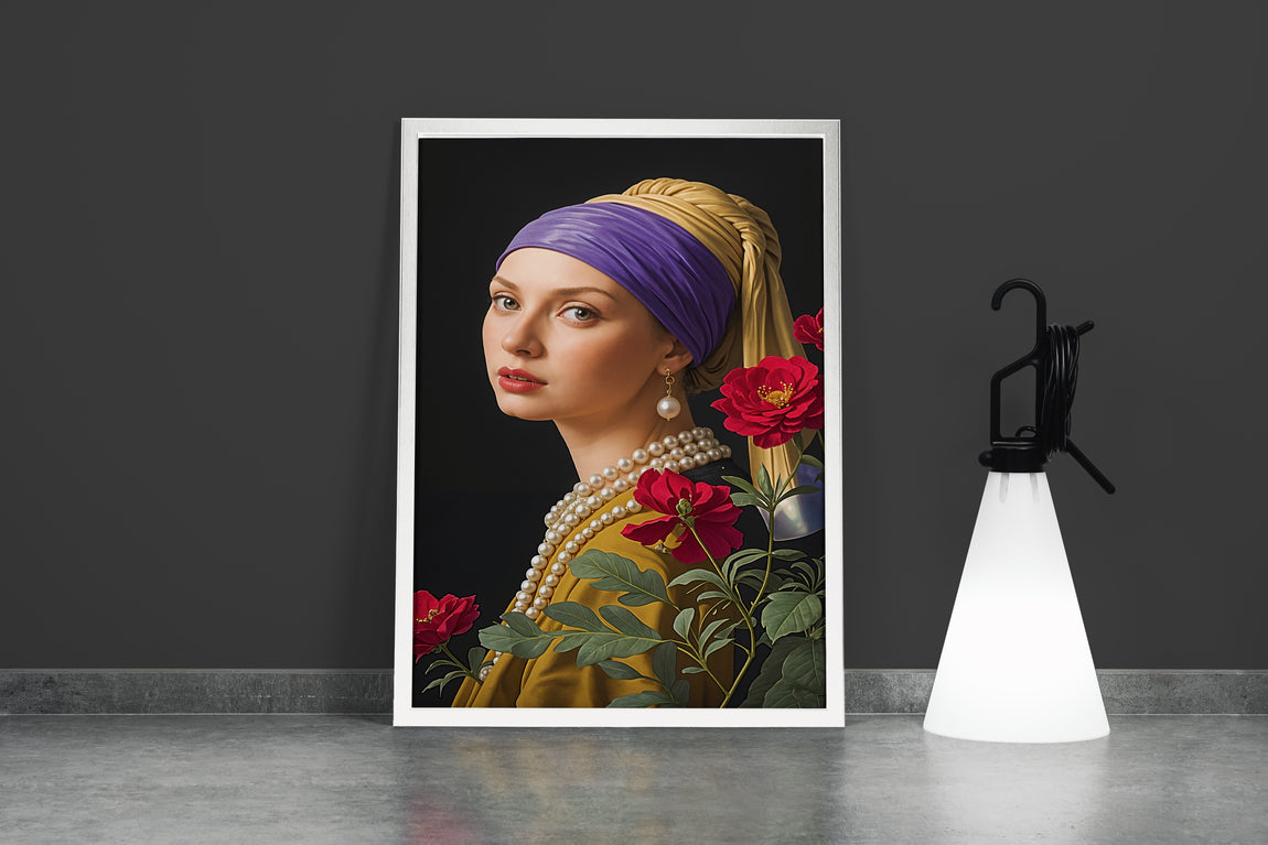 ai creation, modern girl with pearl earring, ai art, art, kanvas tablo