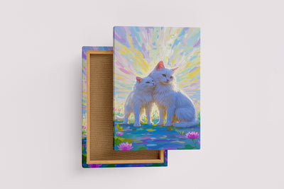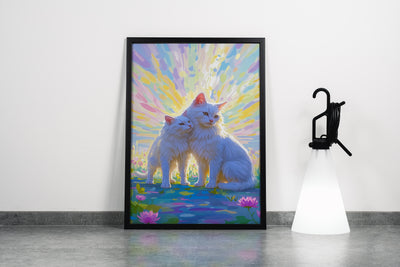 Monet esintileri taşıyan bu baskı, zarif beyaz kedileri sanatsal bir dokunuşla buluşturuyor. Ev veya ofisinizde sıcak ve özgün bir atmosfer yaratırken, kaliteli kanvas yüzeyi ile detaylar net ve canlı kalır. Sanatın kedilerle harmanlandığı bu özgün baskı, dekorasyona sofistike bir hava katar.