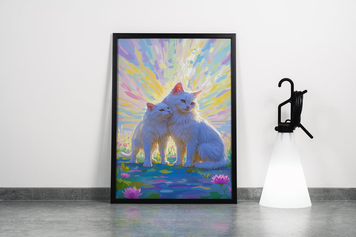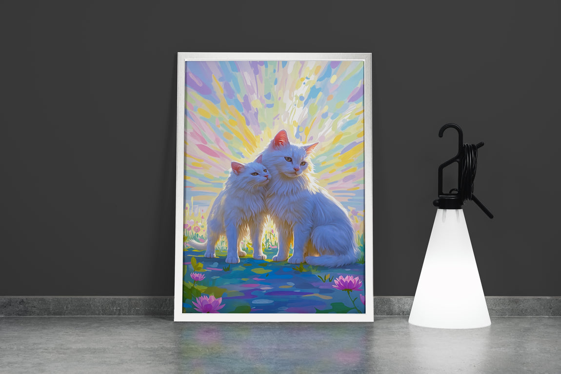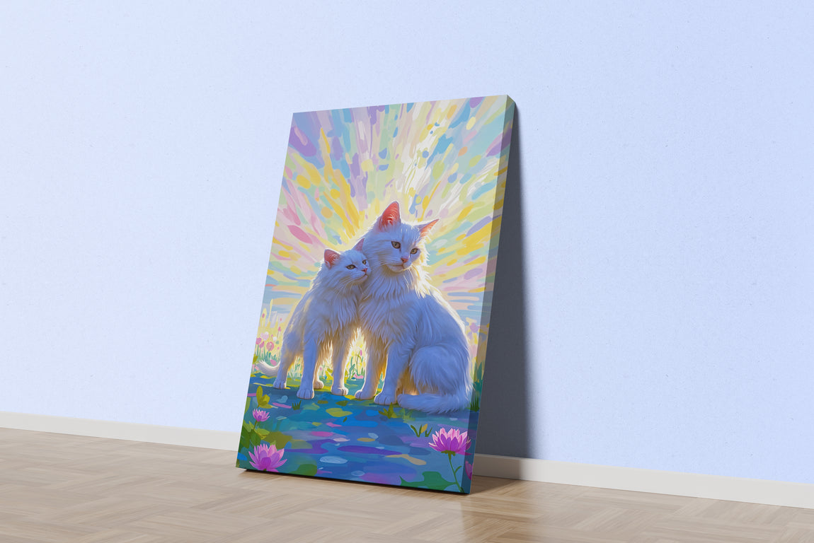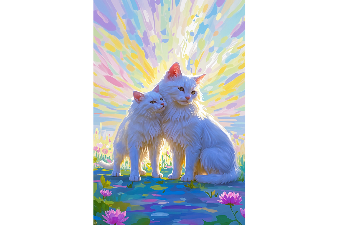 ai creation, Monet themed white cats, pet, ai art, art, kanvas tablo