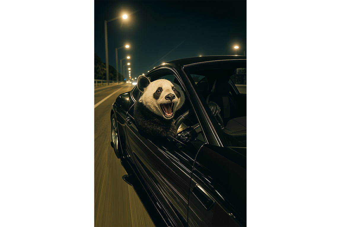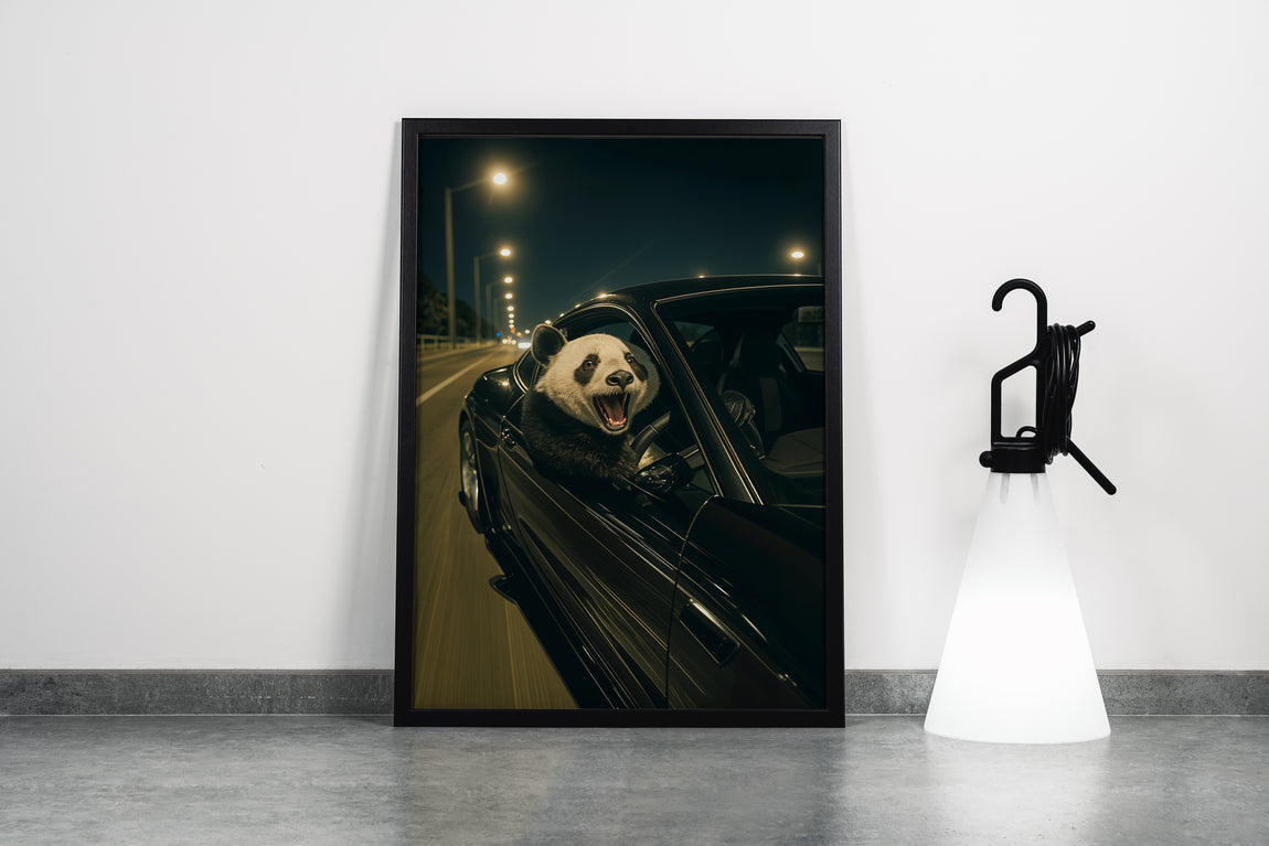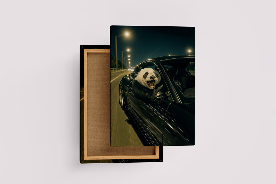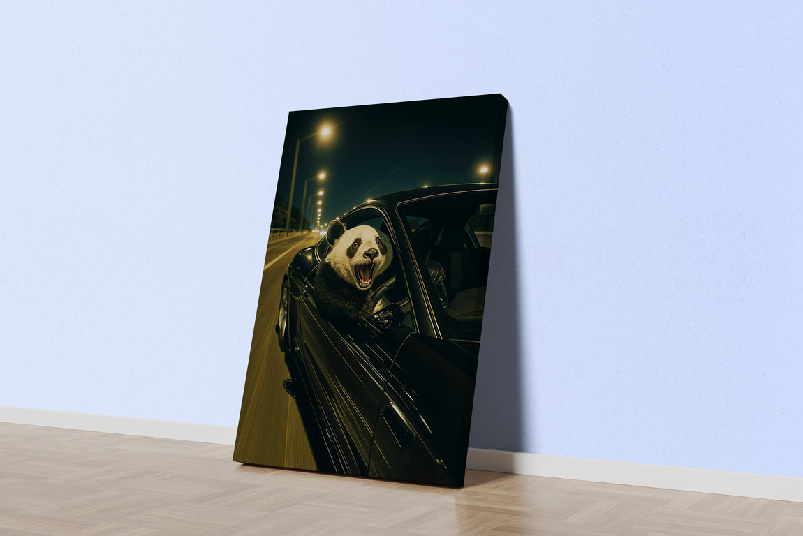 ai creation, panda driver, ai art, art, kanvas tablo