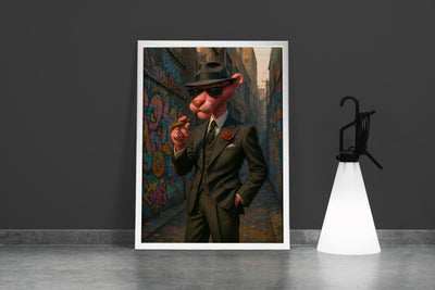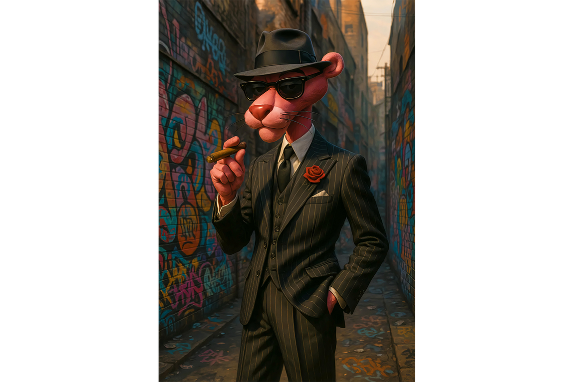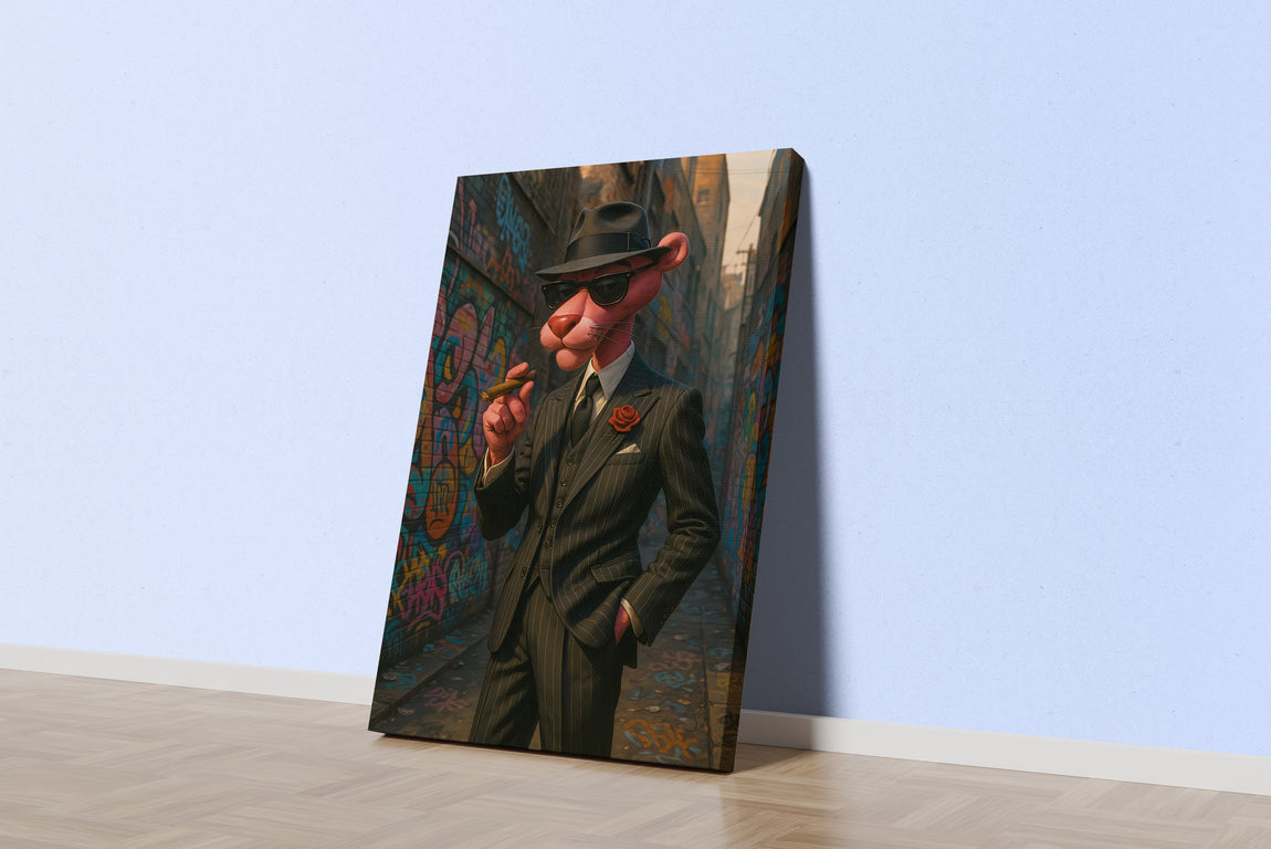 ai creation, pink panther in a suit, ai art, art, kanvas tablo