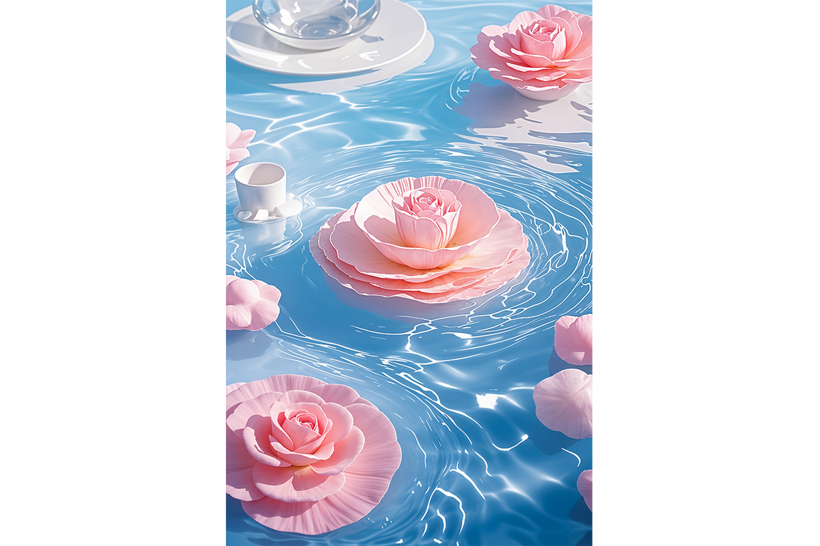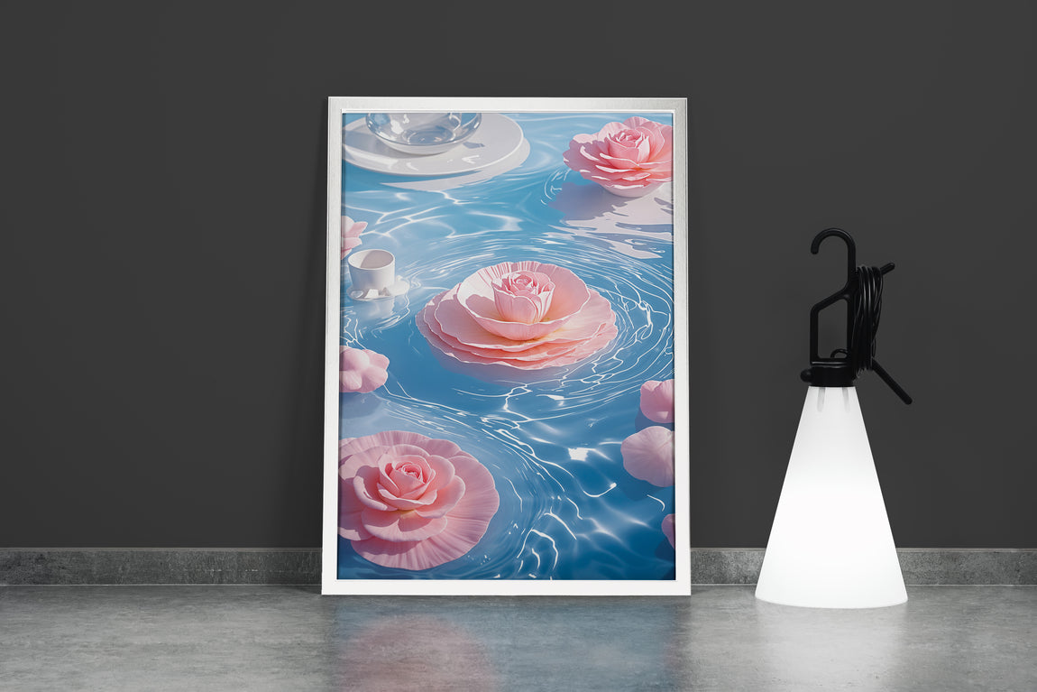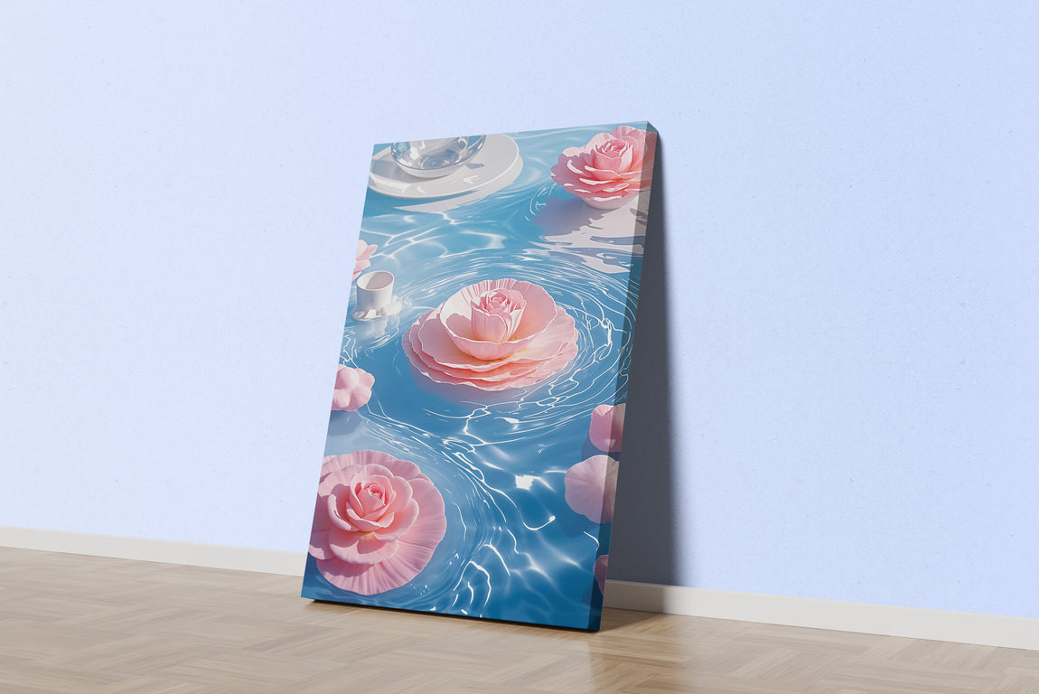 ai creation, pink water lilies blooming in the river, ai art, art, kanvas tablo