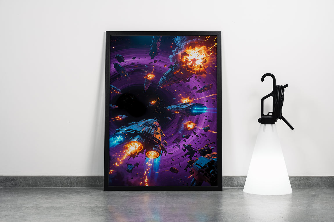 Dijital baskı teknolojisiyle özenle hazırlanan bu eser, uzayın derinliklerindeki Andromeda galaksisinin dinamik savaş sahnelerini canlandırıyor. Her detay net ve canlı renklerle hayat bulurken, modern yapay zeka sanatının etkileyici birleşimi görsel olarak dikkat çekici bir atmosfer sunuyor. Mekanınıza farklı ve etkileyici bir hava katmak için ideal.
