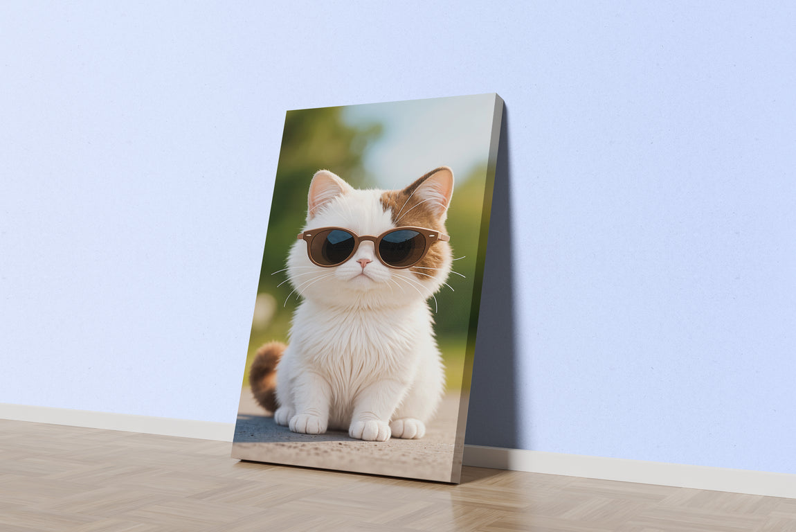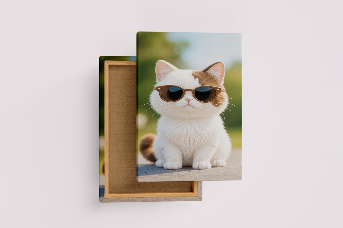 Gözlüklü sevimli bir kedi figürünün detaylı baskısıyla, yaşam alanlarınıza sıcaklık ve neşe katın. Yüksek kaliteli kanvas üzerine yapılan baskı, canlı renkler ve net çizgiler sunar. Ev veya ofis dekorasyonunda dikkat çekici bir atmosfer yaratmak isteyenler için ideal bir tercih. Dayanıklı malzemesi sayesinde uzun ömürlü kullanım sağlar.