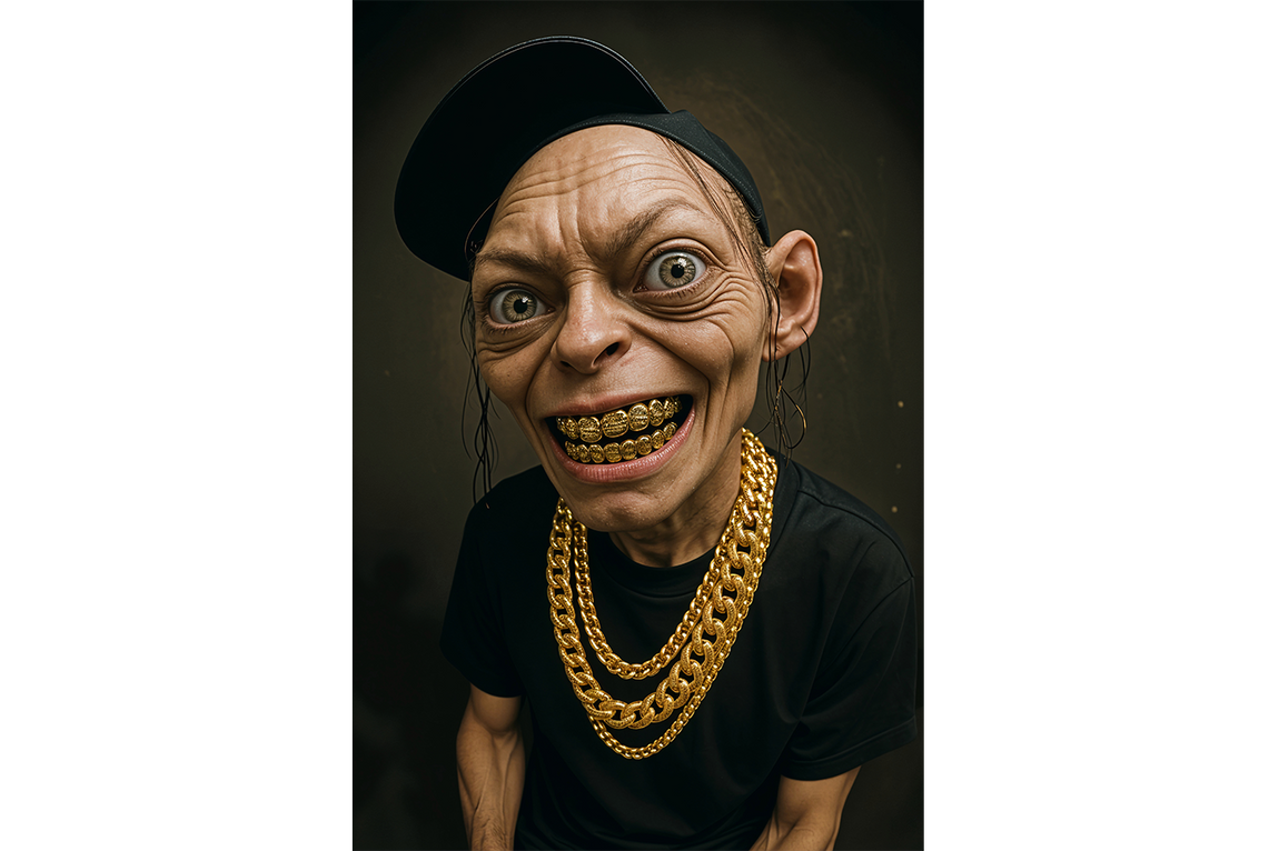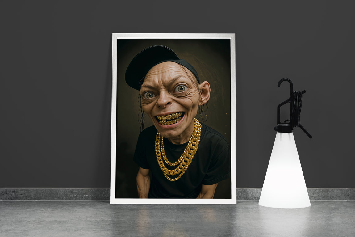 ai creation, psycho gollum and his necklaces, art, kanvas tablo