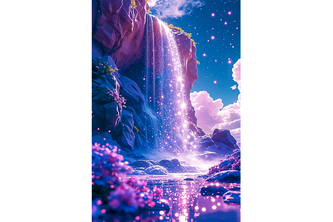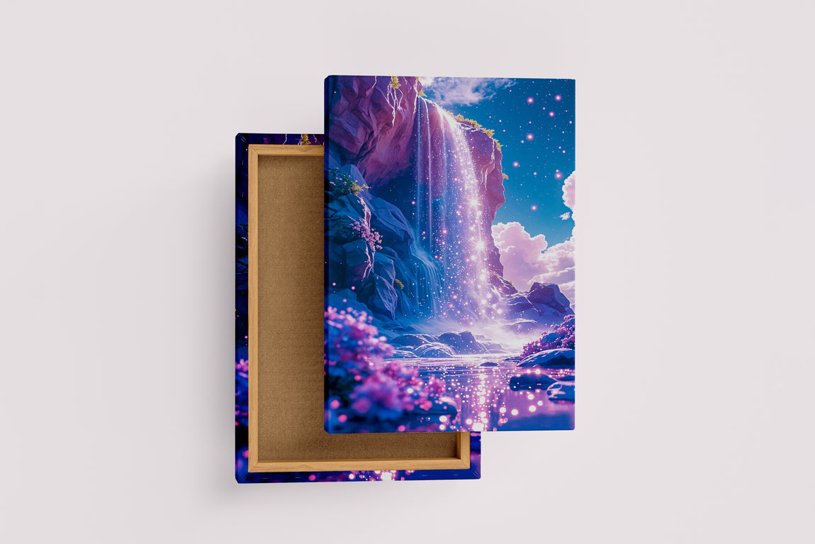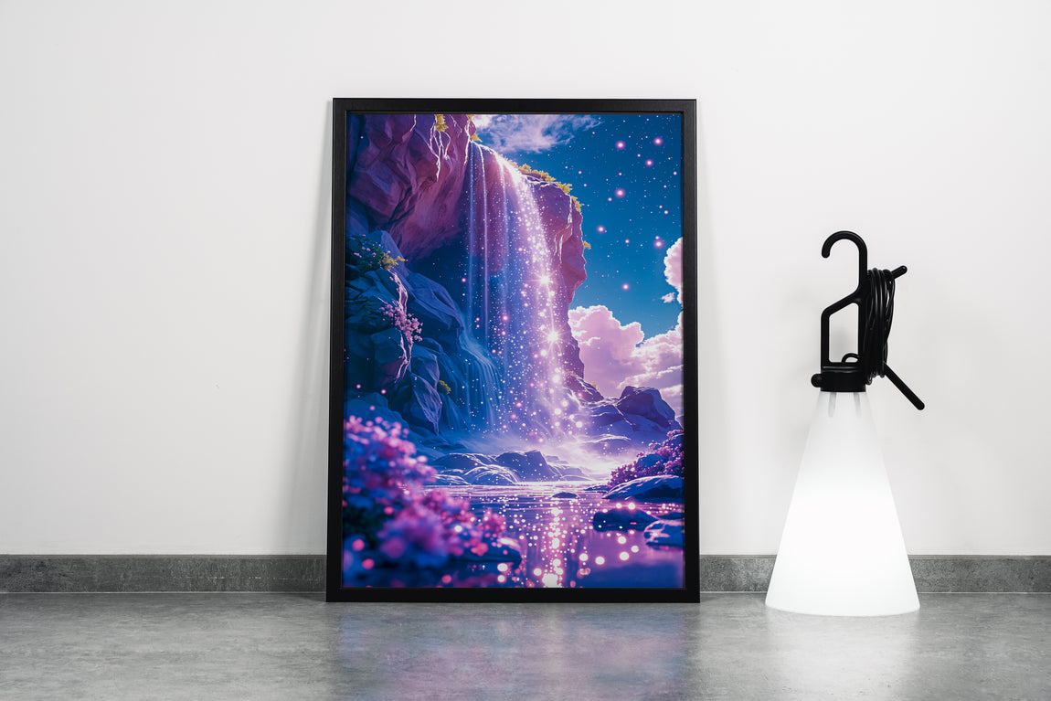 Mor ve tonlarının hakim olduğu, yıldızlarla süslenmiş bir şelalenin huzur veren görüntüsünü evinize taşıyın. Yüksek kaliteli baskı teknikleriyle hazırlanmış bu ürün, detayları ve renk geçişleriyle büyüleyici bir atmosfer yaratır. Modern dekorasyonunuza sofistike bir dokunuş eklerken, dayanıklı malzemesi uzun ömürlü kullanım sağlar. Ruhunuzu dinlendirecek ve mekanınıza derinlik katacak eşsiz bir görsel deneyim sunar.