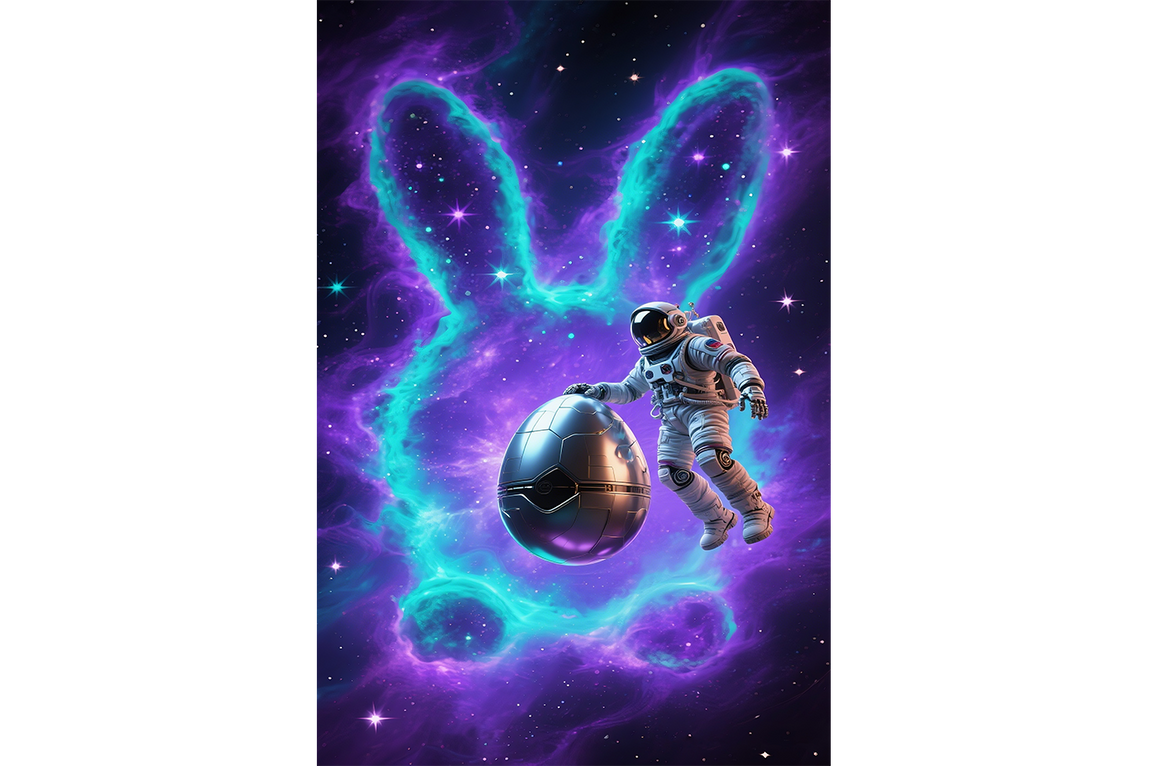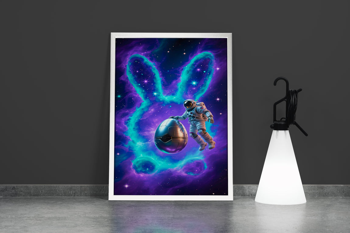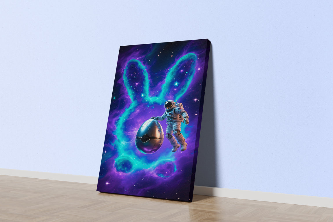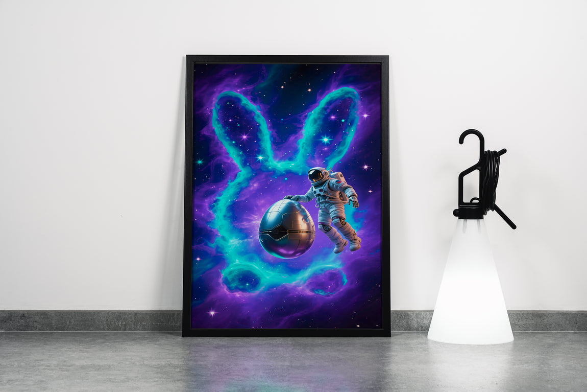 ai creation, rabbit and astronaut in space, ai art, art, kanvas tablo