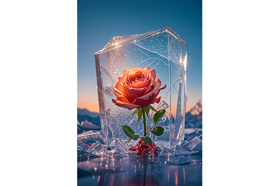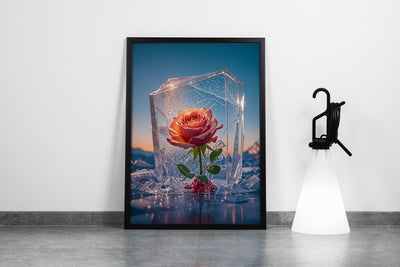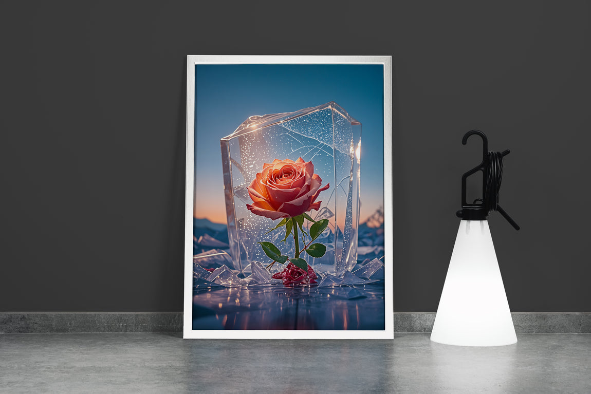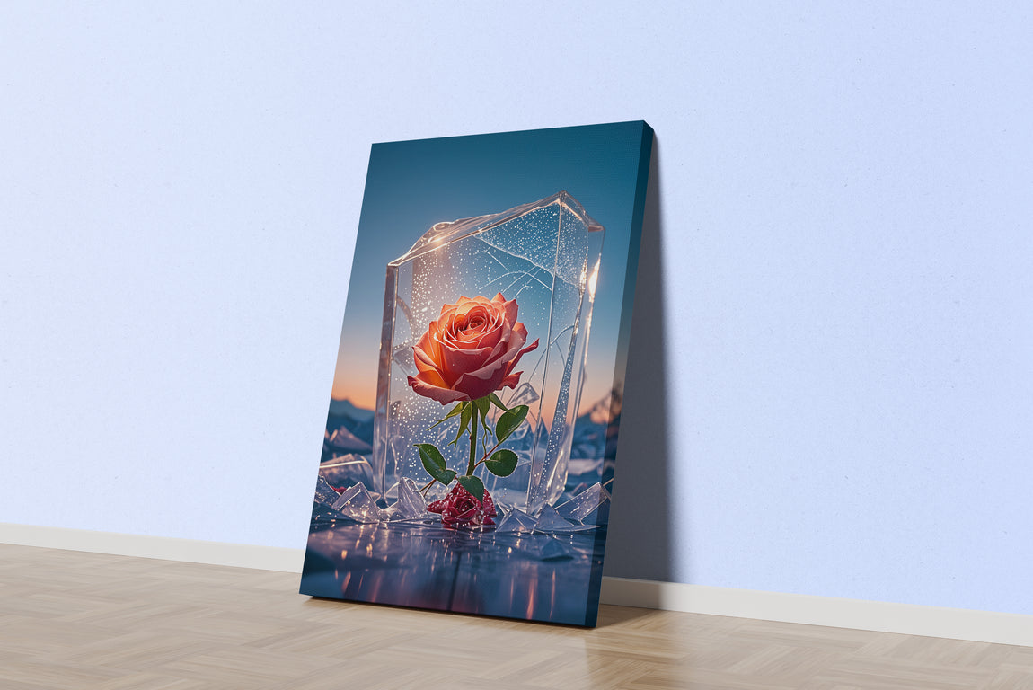 ai creation, red rose in crystal, frozen themed, ai art, art, kanvas tablo