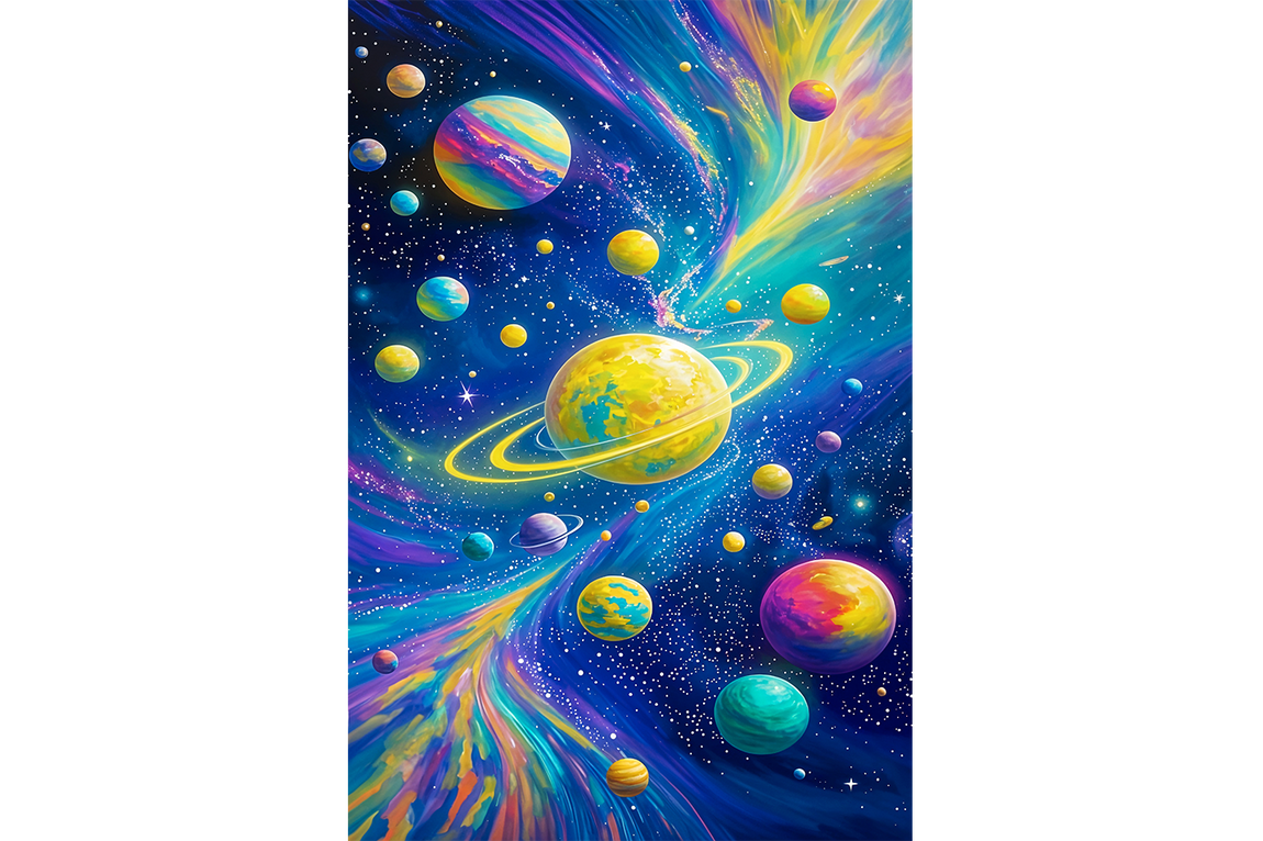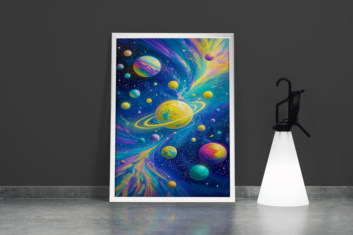 ai creation, saturn and the other colorful planets in its orbit model 1, ai art, art, kanvas tablo