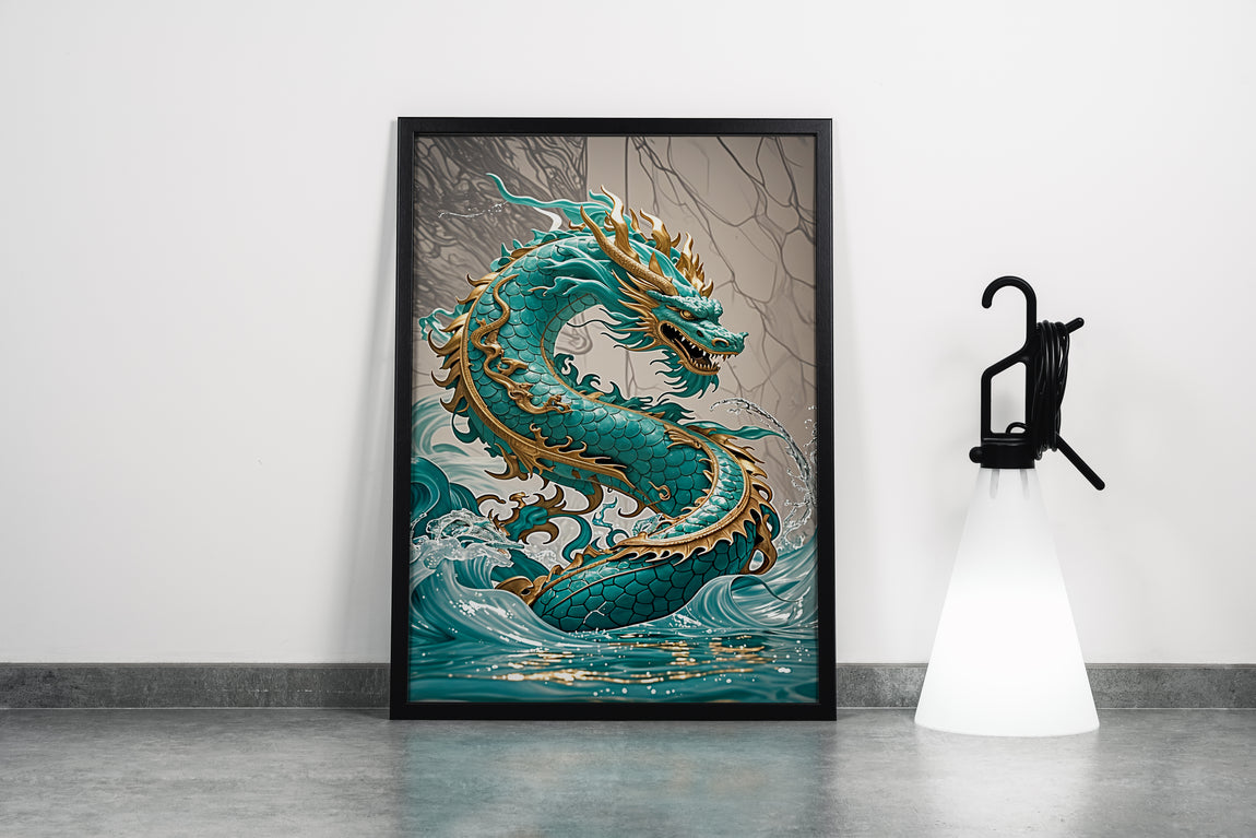 Yeşil pullarla kaplı deniz ejderhasının detaylı tasarımı, yüksek kaliteli baskı teknolojisiyle canlı ve net bir şekilde sunuluyor. Bu baskı, ortamınıza mistik ve sıradışı bir hava katarken, uzun ömürlü malzemesi sayesinde renklerini korur ve deformasyona karşı dayanıklıdır. Sanatseverler ve özgün dekor arayanlar için dikkat çekici bir seçim.