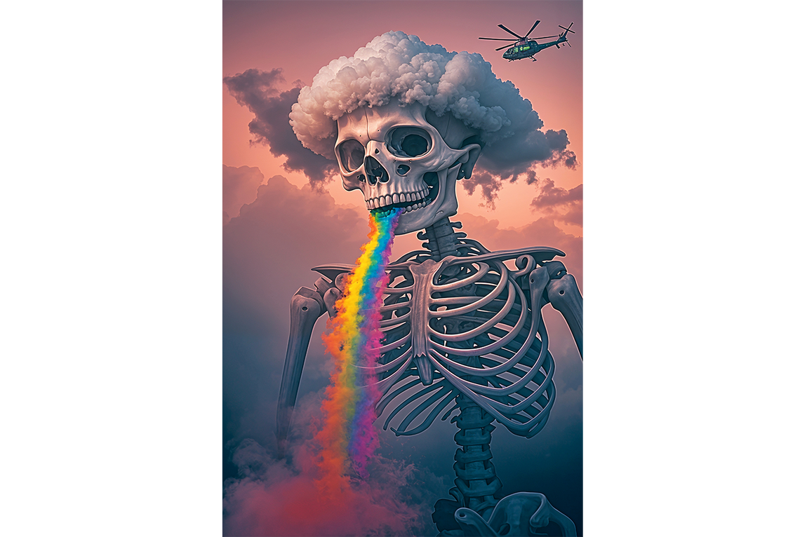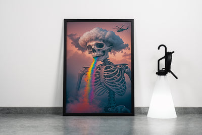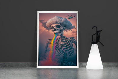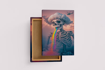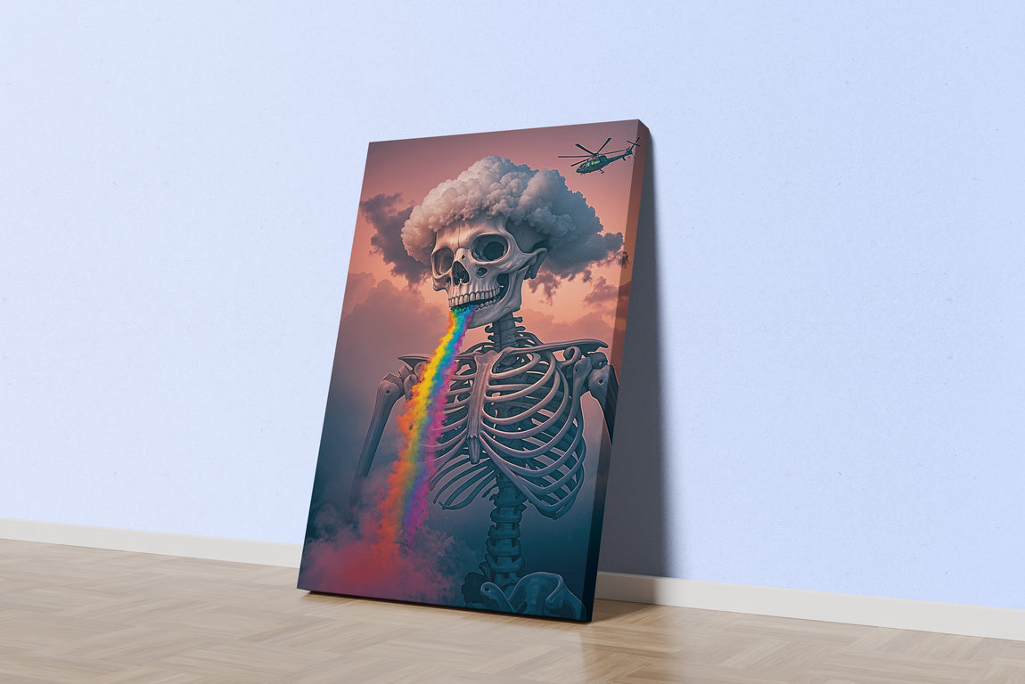 ai creation, skeletor with rainbow colored lava pouring from its mouth, ai art, art, kanvas tablo