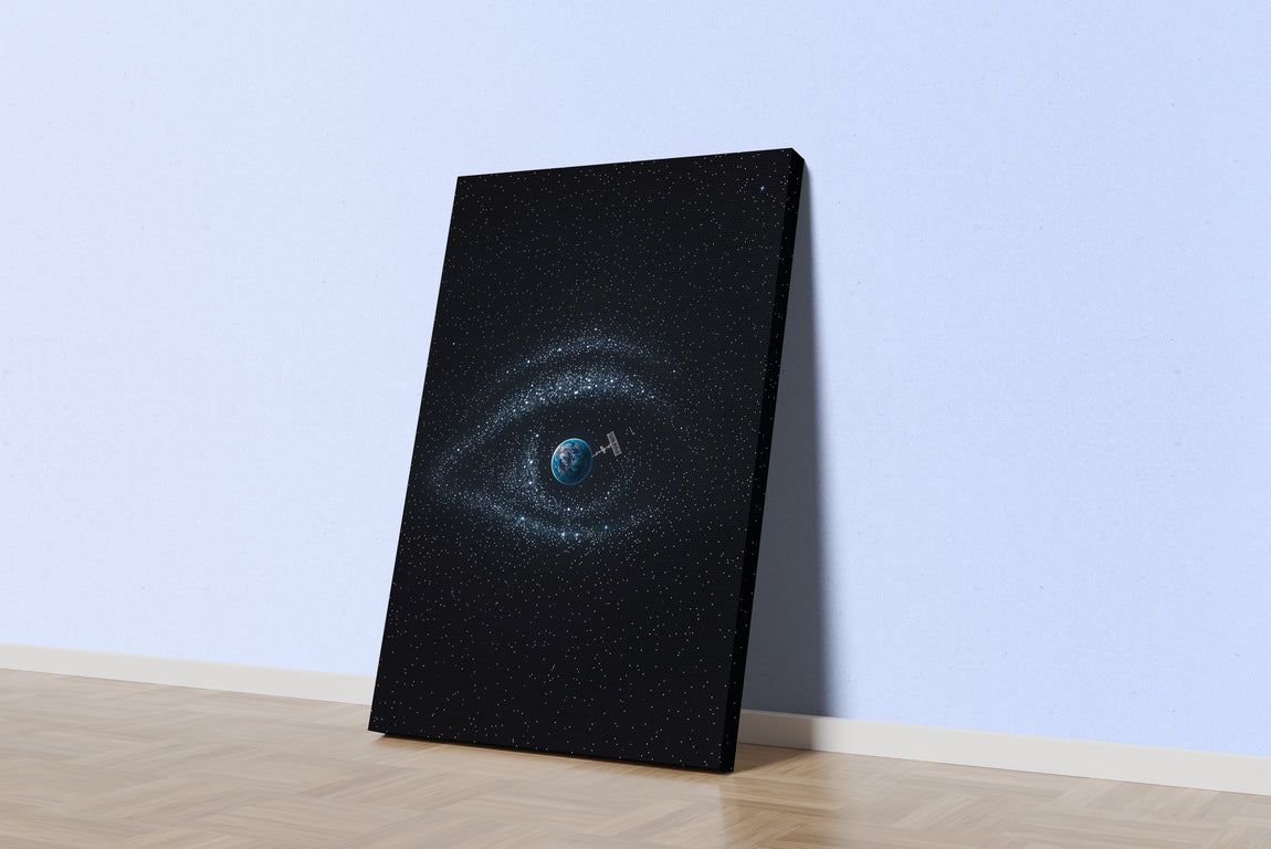 ai creation, stars shaped like eyes, orbiting the earth, ai art, art, kanvas tablo