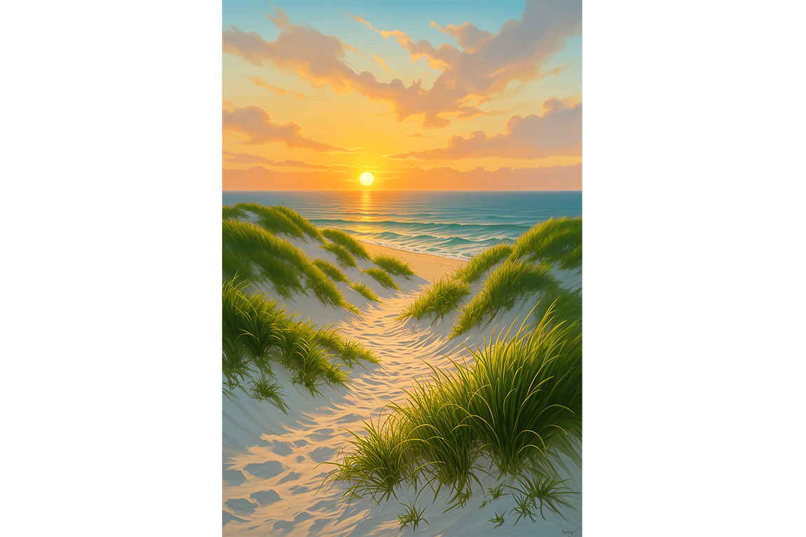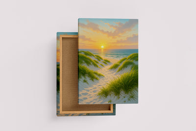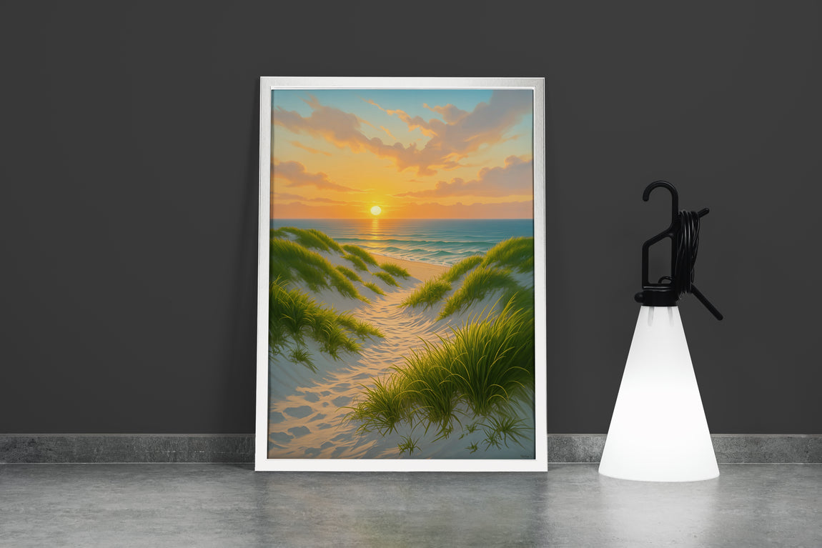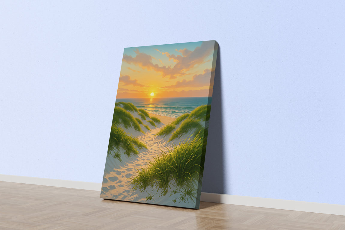 ai creation, sunset on the beach among the sand, ai art, art, kanvas tablo