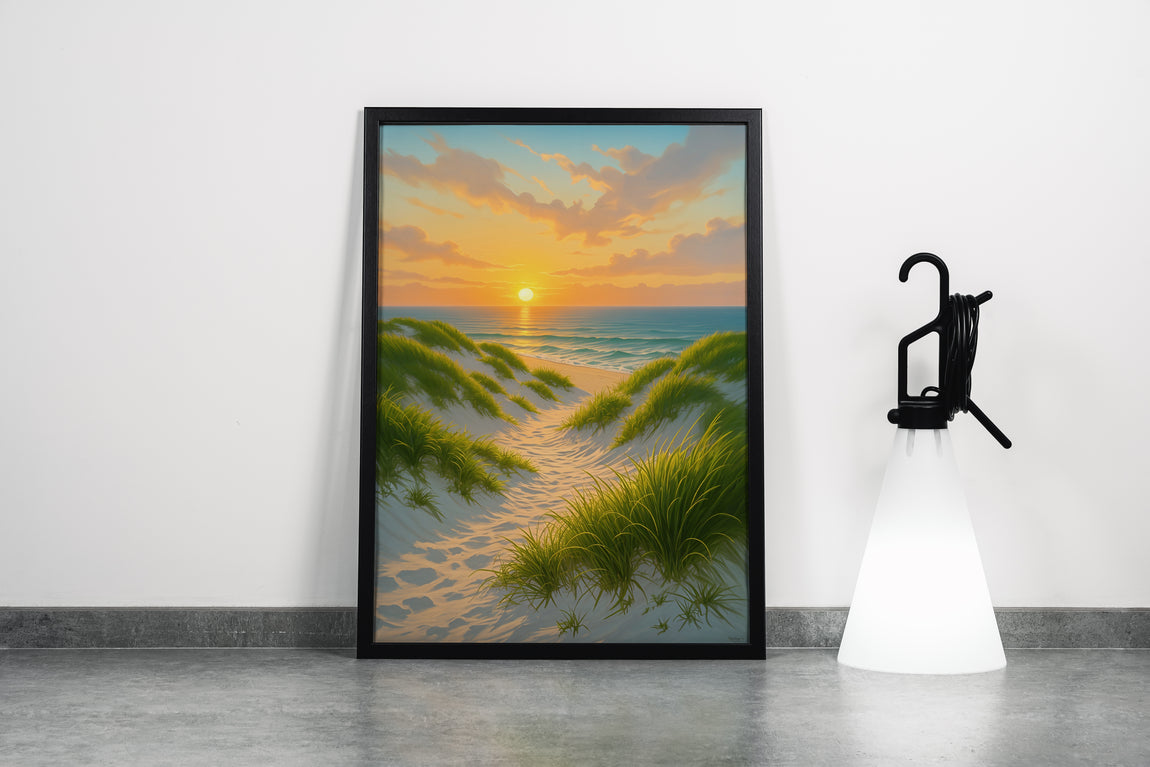 Sahildeki gün batımının sıcak renkleri, ince detaylarla kaliteli baskı tekniği sayesinde canlı ve kalıcı bir şekilde yansıtılıyor. Doğal kum dokusundaki tonların uyumu, oturma odanız veya çalışma alanınızda huzur ve estetik bir atmosfer yaratır. Dayanıklı malzemeye uygulanan baskı, renklerin zamanla solmasını engeller ve uzun ömürlü kullanım sağlar. Dekorasyonunuza sıcaklık ve canlılık katmak isteyenler için ideal bir seçim.