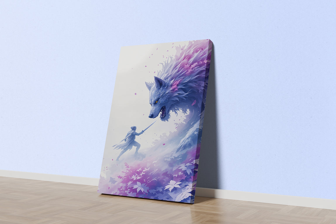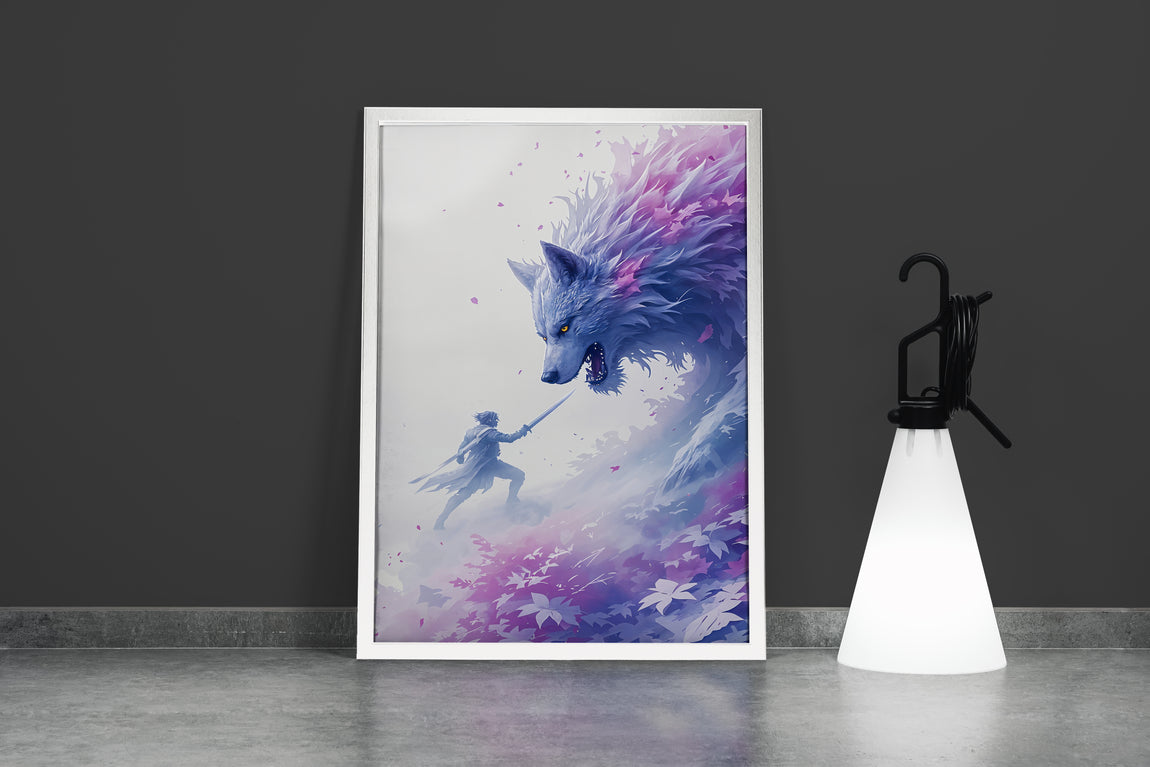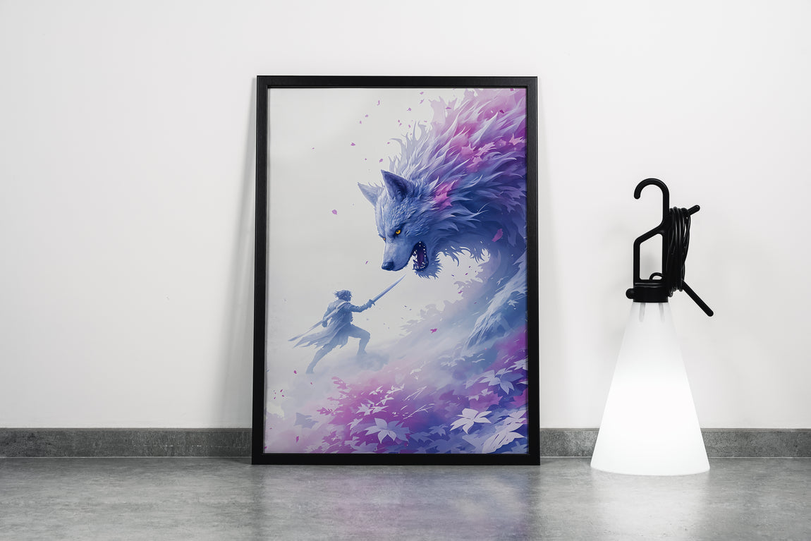 Canlı renkler ve detaylarla tasvir edilen dövüşçü ile kurt arasındaki mücadele, baskı kalitesi sayesinde her ayrıntısıyla öne çıkıyor. Dayanıklı malzemeye yapılan bu baskı, duvarlarınıza etkileyici ve güçlü bir atmosfer kazandırır. Sanatın dinamik ruhuyla evinize hareket getirmek isteyenler için ideal bir seçenek.