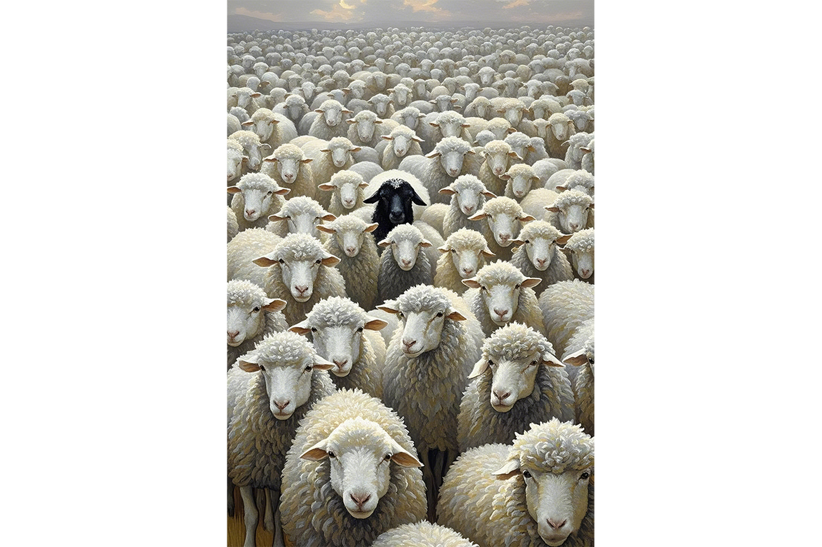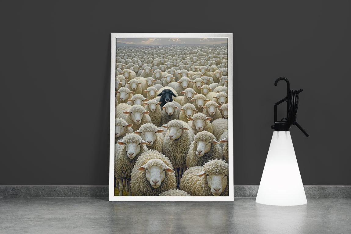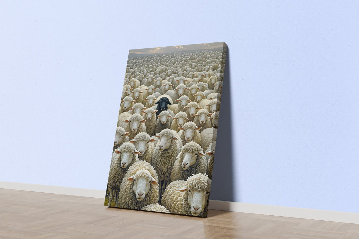 ai creation, the black sheep among the sheep, ai art, art, kanvas tablo