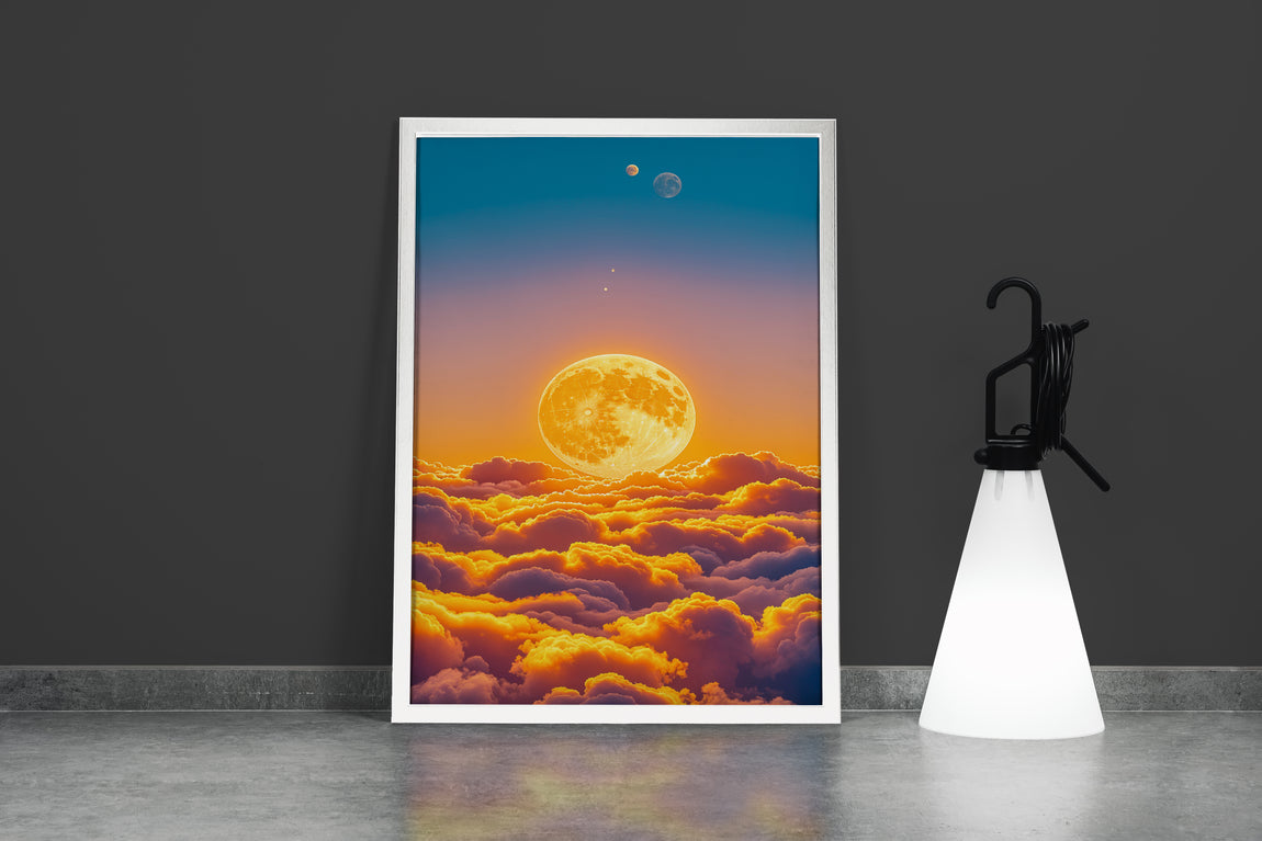 Gökyüzünde bulutların arasından yükselen güneşin sıcak ışınları, uzaklardan Andromeda galaksisinin büyüleyici siluetiyle buluşuyor. Yüksek kaliteli baskı teknikleri sayesinde renklerin canlılığı ve detayların netliği öne çıkarılarak dekorasyonunuza estetik ve derinlik katacak bir atmosfer yaratılıyor. Sanatsal dokunuşlarla evinizin veya ofisinizin havasını değiştiren bu eser, modern ve zarif bir görünüm sunar.