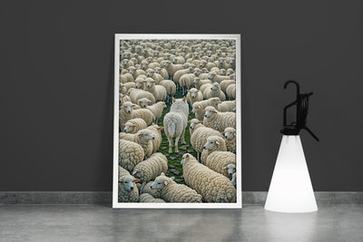 ai creation, the white wolf among the sheep, ai art, art, kanvas tablo