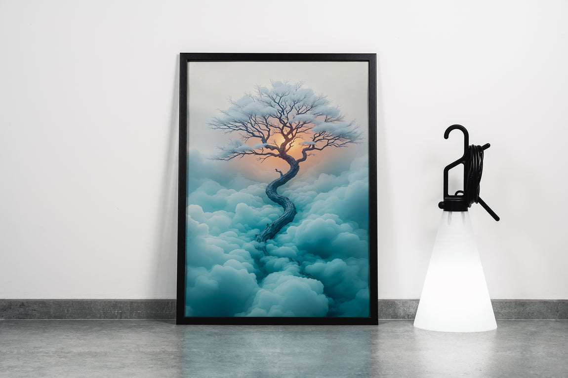 Bulutların üzerinde yükselen bir ağacın gün batımı ışıklarıyla buluştuğu bu baskı, mekanınıza derinlik ve huzur katacak. Canlı renkleri ve detaylı çizimi sayesinde her baktığınızda hayal gücünüzü harekete geçirir. Dayanıklı malzemeye yapılan bu baskı, uzun ömürlü kullanım ve kolay asılma imkanı sağlar. Estetik ve özgün bir atmosfer yaratmak isteyenler için ideal bir seçim.