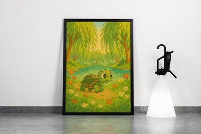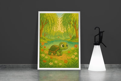 Orman içinde sakin bir kaplumbağayı yansıtan bu baskı, çocukların hayal gücünü harekete geçirir ve yaşam alanlarını renklendirir. Canlı detayları ve kaliteli baskı tekniği, uzun ömürlü estetik bir dekor sunar. Doğadan ilham alan bu tasarım, mekanlara huzur ve sıcaklık katmak için ideal.
