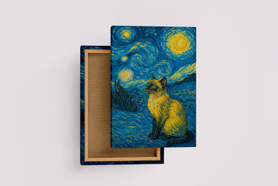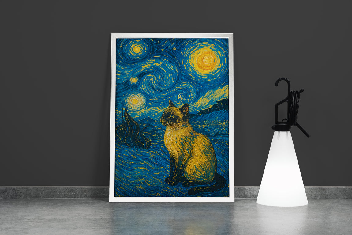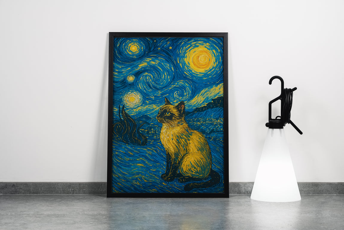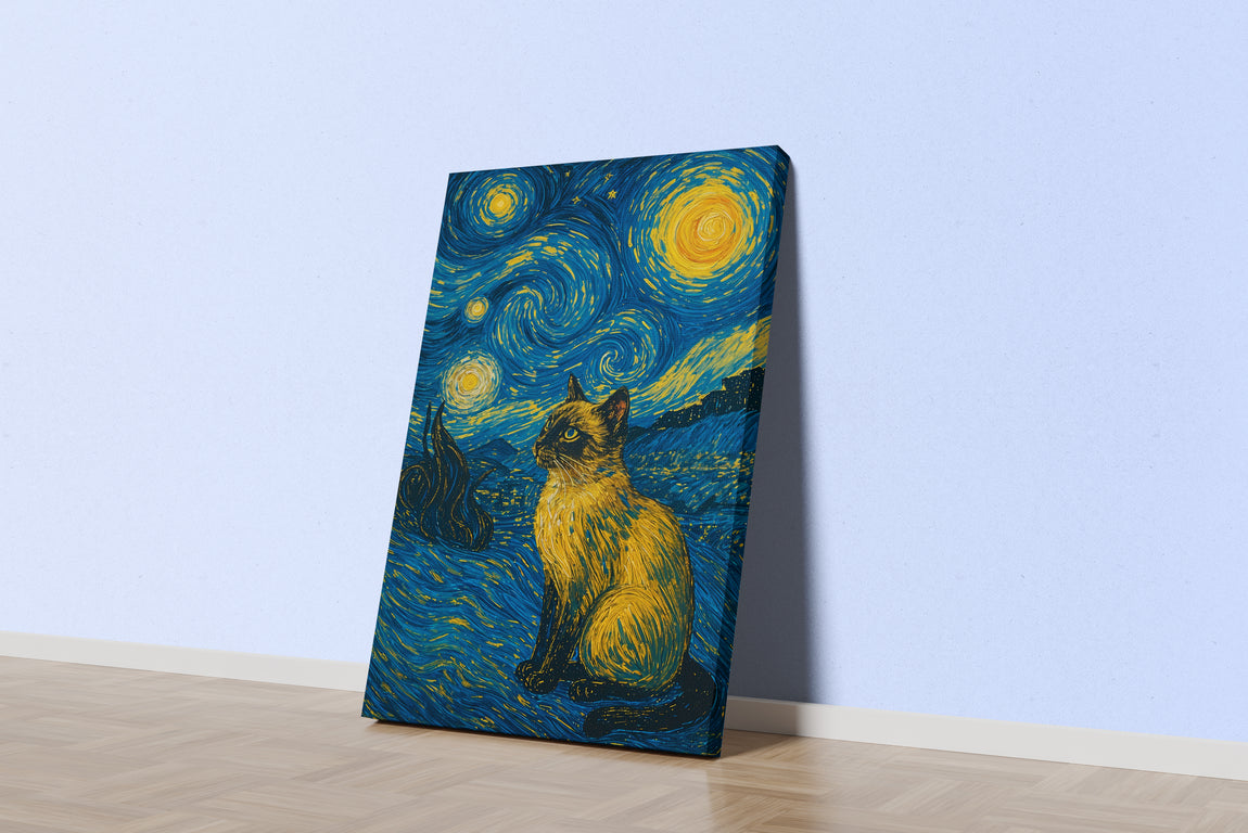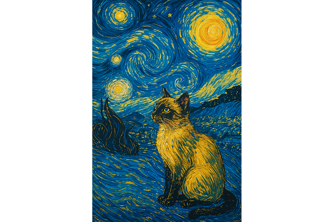 ai creation, van gogh starry night themed cat, ai art, art, kanvas tablo