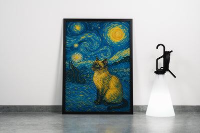 Ay ışığı altında parıldayan detaylarla tasarlanmış bu baskı, Van Gogh’un “Starry Night” tablosundan ilham alır ve kedi figürünü sanatseverlerle buluşturur. Canlı renkler ve ince ayrıntılar, duvarlarınıza eşsiz bir atmosfer kazandırır. Kaliteli baskı tekniği sayesinde uzun ömürlü ve canlı bir görünüm sağlar, dekorasyonunuza özgünlük katar.