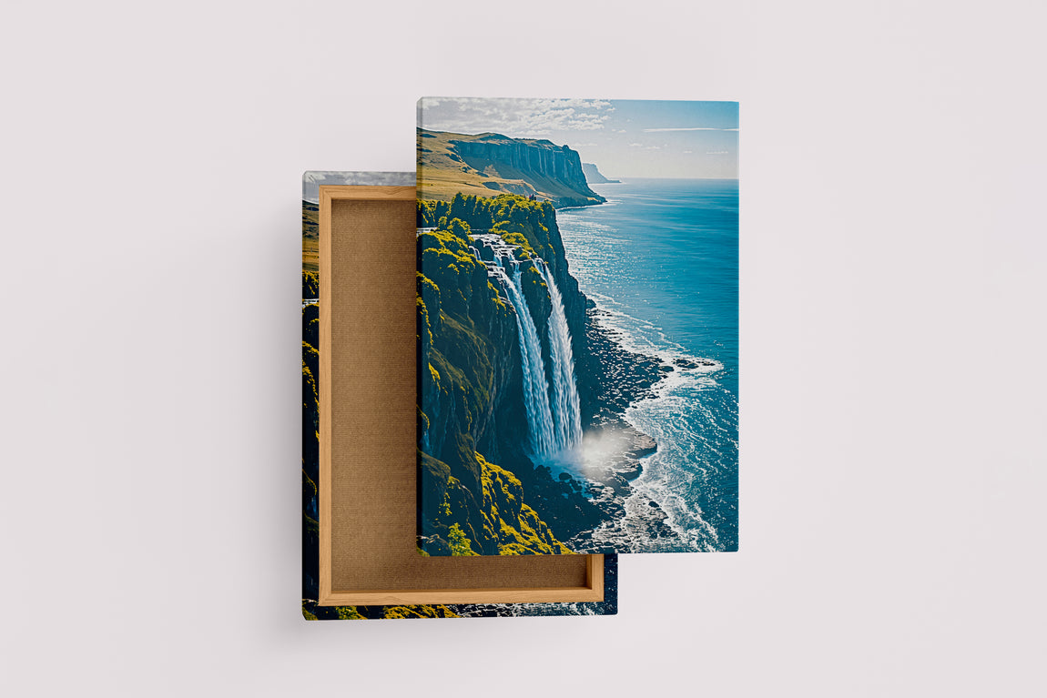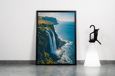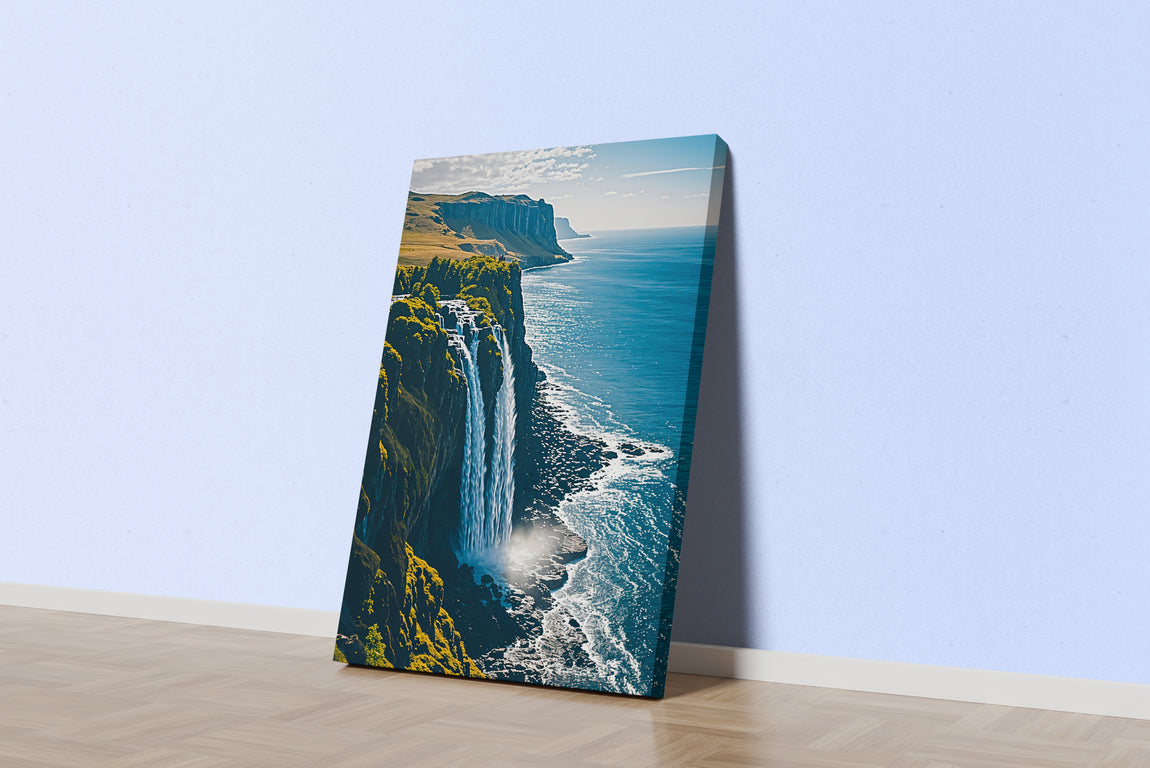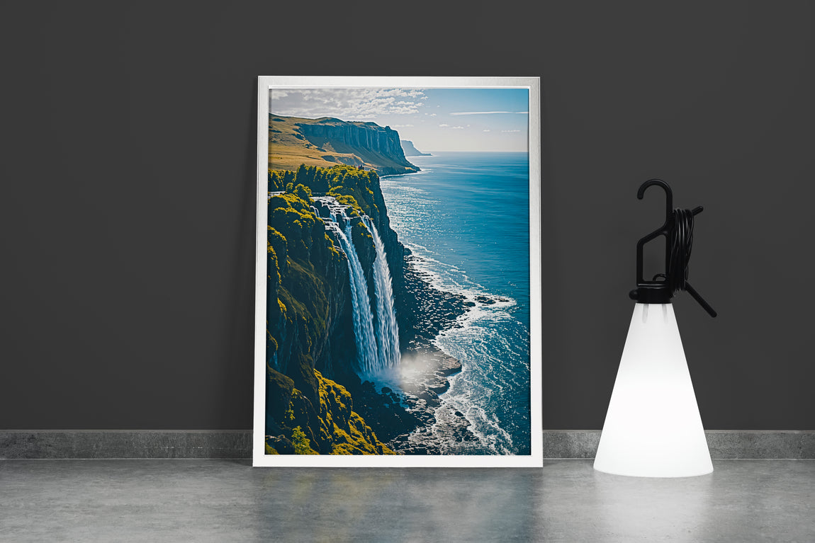 Doğanın gücünü ve sakinliğini aynı anda yansıtan bu baskı, uçurumdan denize akan şelalenin detaylarını canlı ve net renklerle sunar. Yüksek kaliteli malzemeler üzerine yapılan baskı, dekorasyonunuza zarif bir dokunuş katarken yaşam alanlarınıza ferahlatıcı bir atmosfer getirir. Her ışıkta göz alıcı duran bu sanat eseri, estetik ve doğallığı bir arada arayanlar için ideal bir tercih.