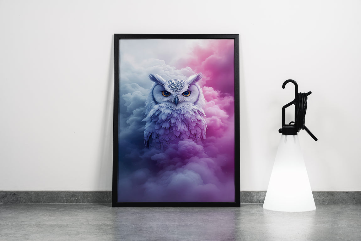 ai creation, white owl among the clouds, ai art, art, kanvas tablo