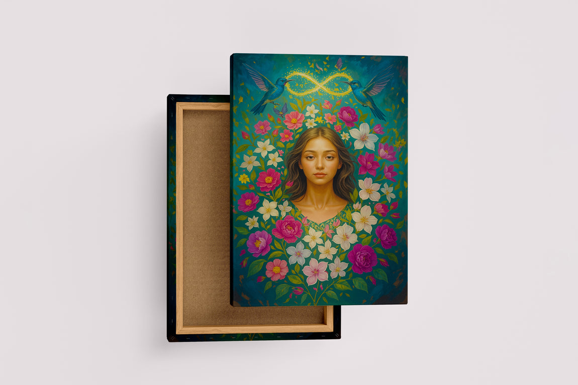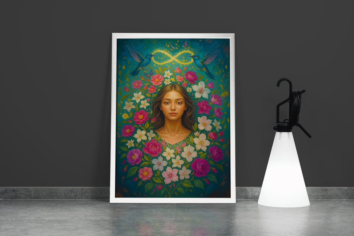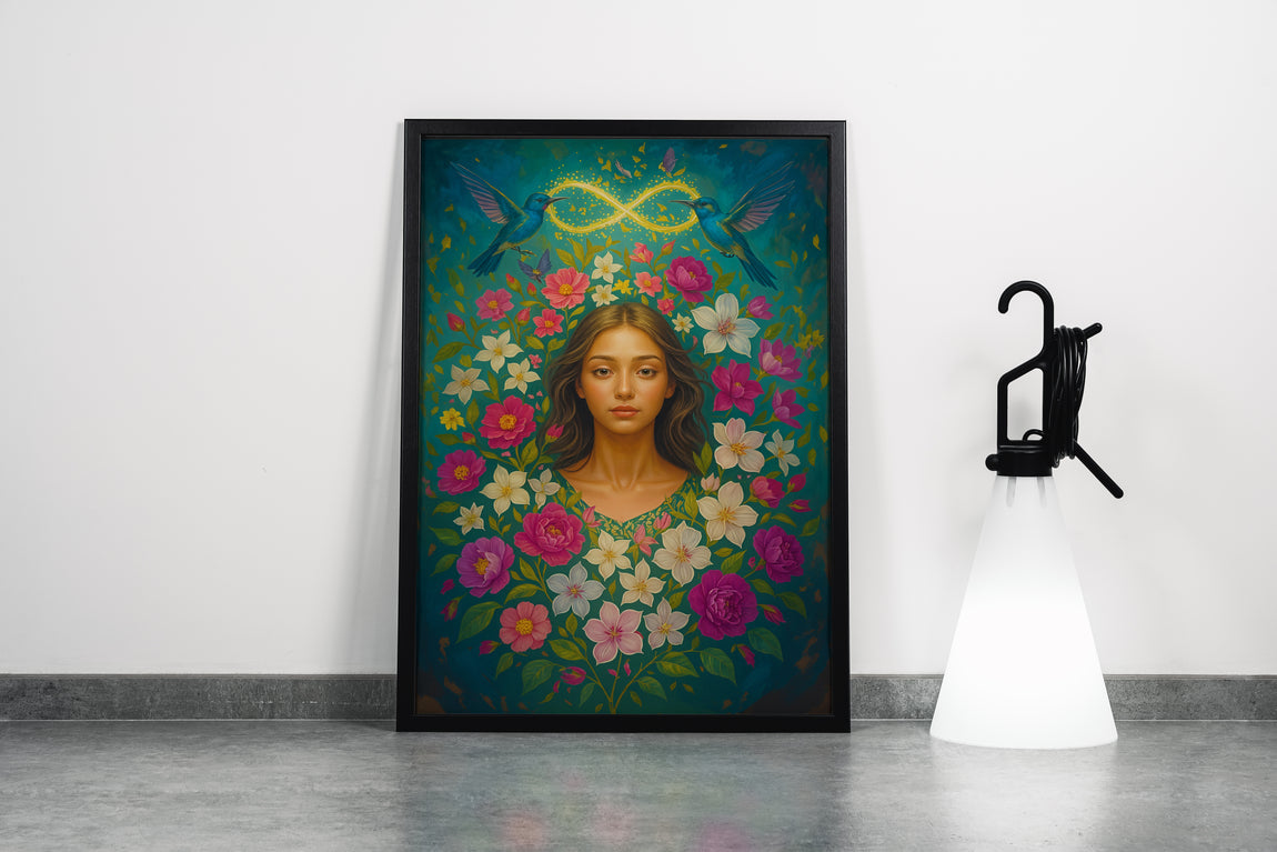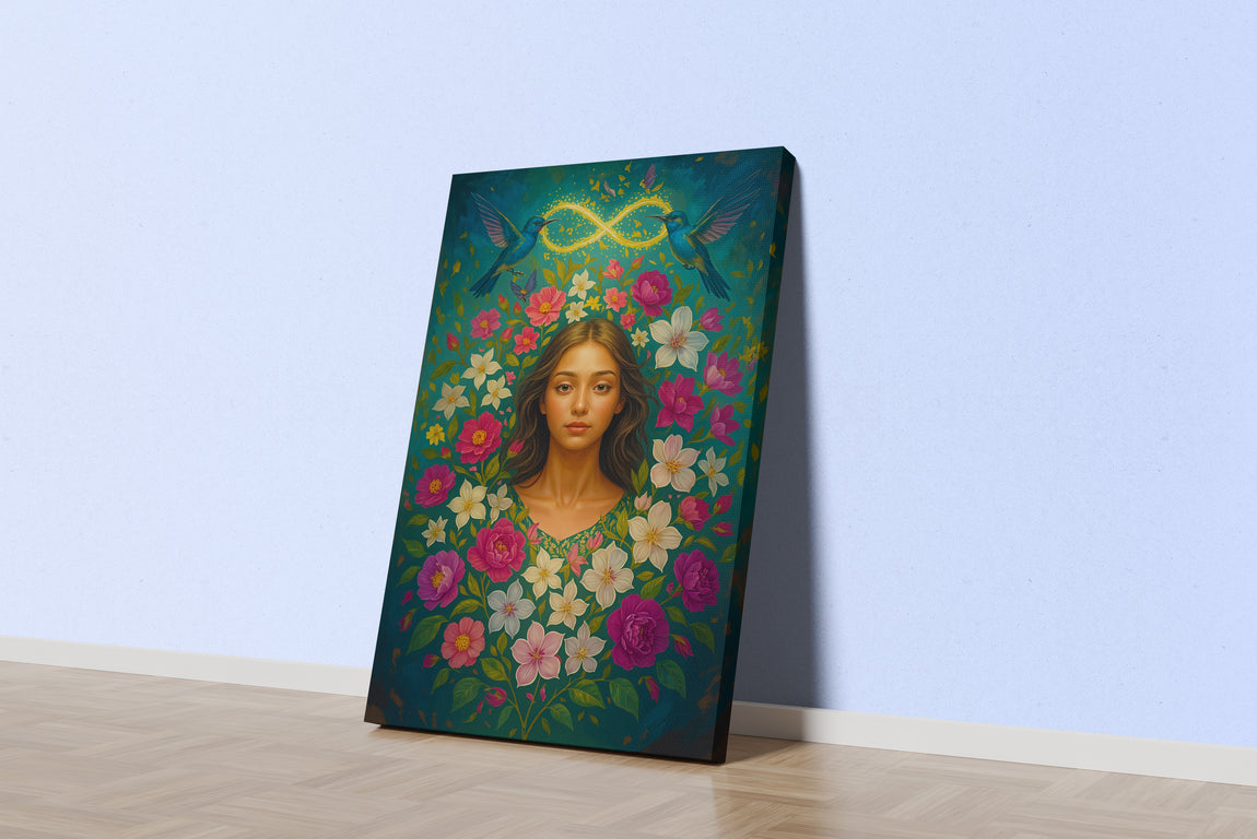 Zarif bir çiçeklerle çevrili kadının detaylı ve canlı tasvirini yüksek kaliteli baskı teknolojisiyle buluşturuyor. Canlı renkler ve ince detaylar, dekorasyonunuza sofistike ve doğal bir dokunuş ekler. Kalıcı baskı yüzeyi sayesinde uzun ömürlü ve solmaya karşı dayanıklı bir görsel sunar. Bu sanat eseri, yaşam alanlarınıza estetik ve huzur katarak benzersiz bir atmosfer yaratır.