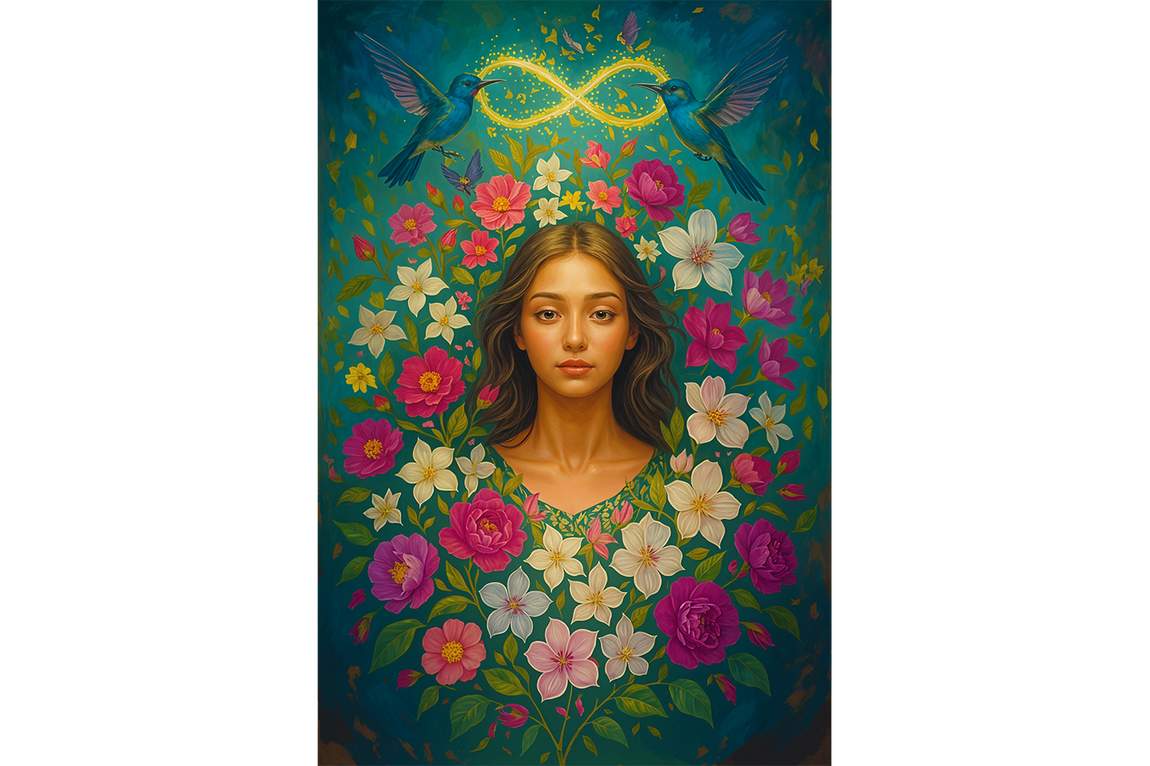 ai creation, woman wrapped in flowers, ai art, art, kanvas tablo