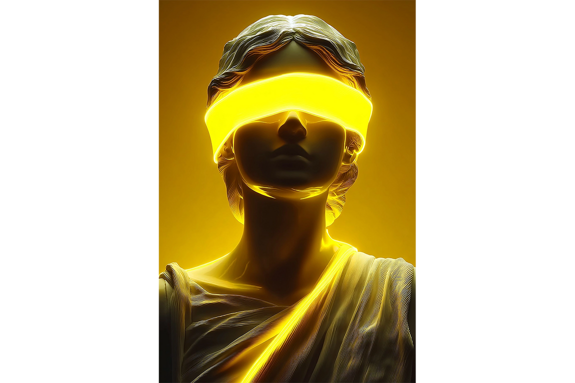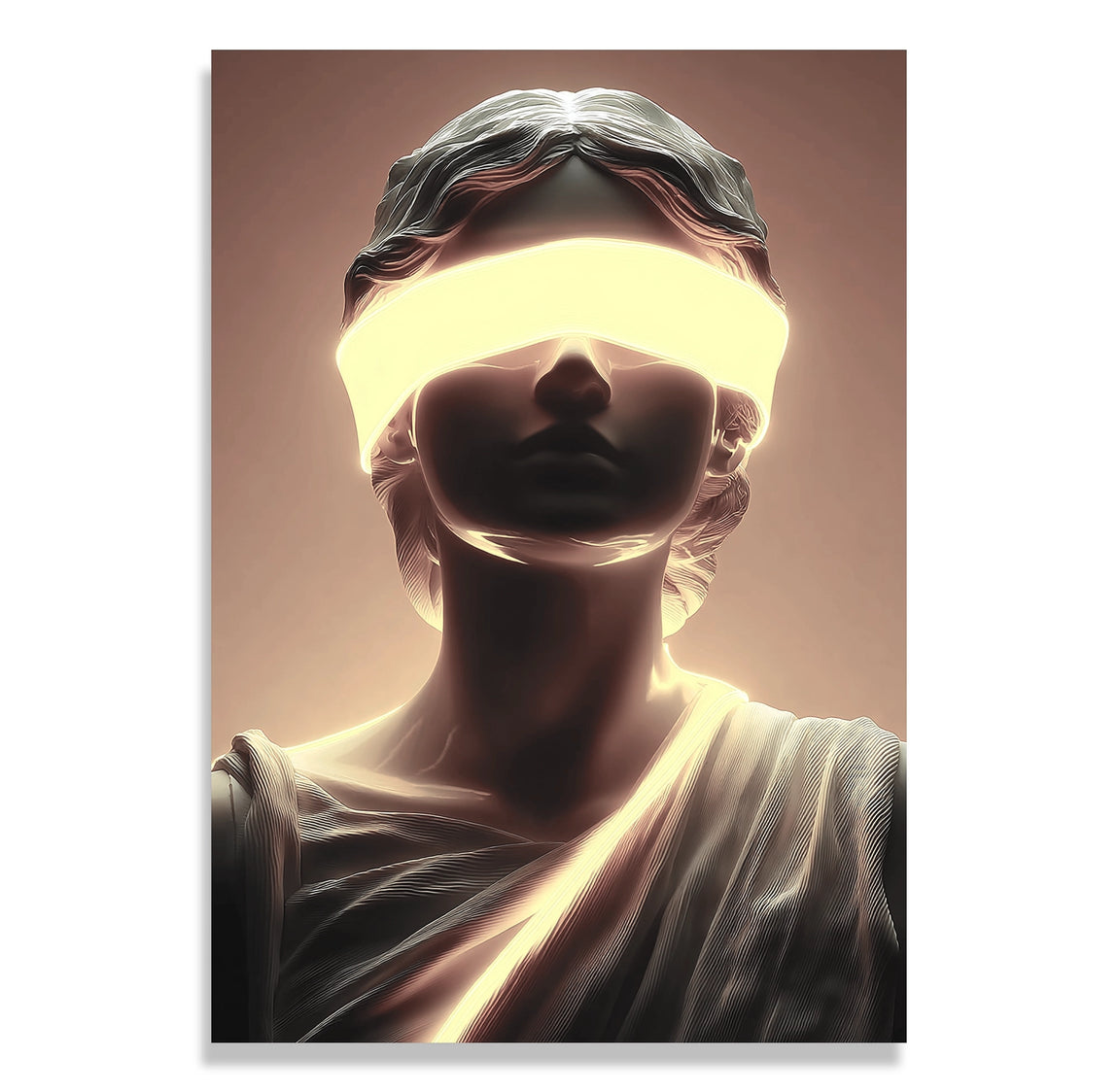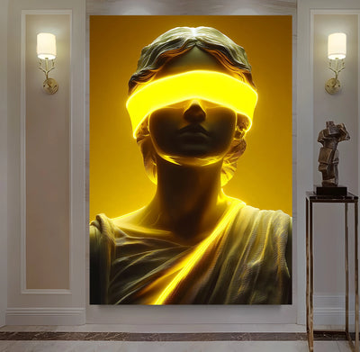 Altın Işıklı Adalet Heykeli – Uzaktan Kumandalı LED Işıklı Kanvas Tablo