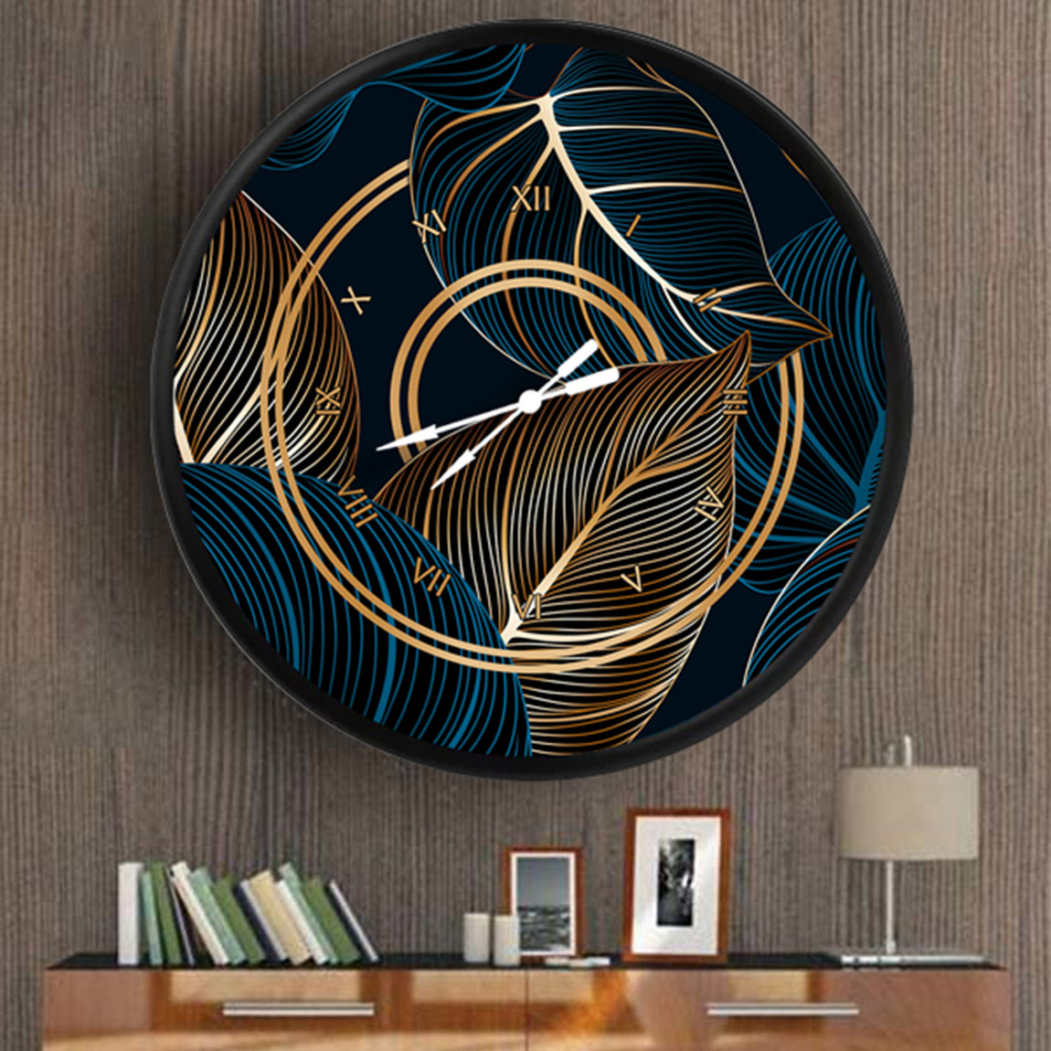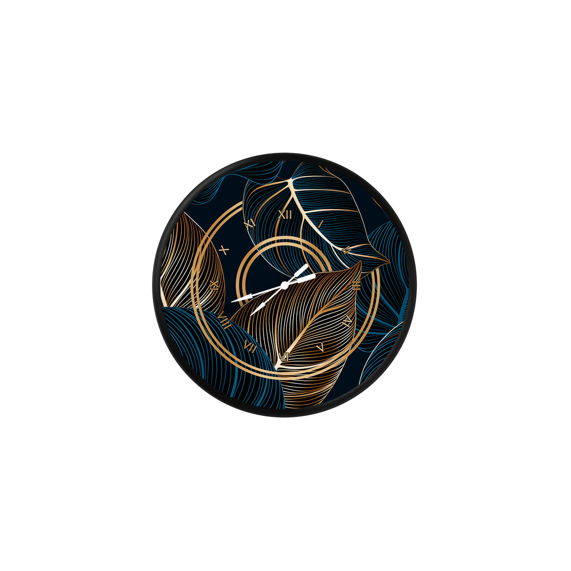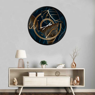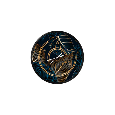 altın ve mavi çizgili tropik yapraklar, MDF duvar saati
