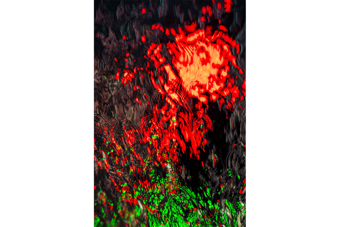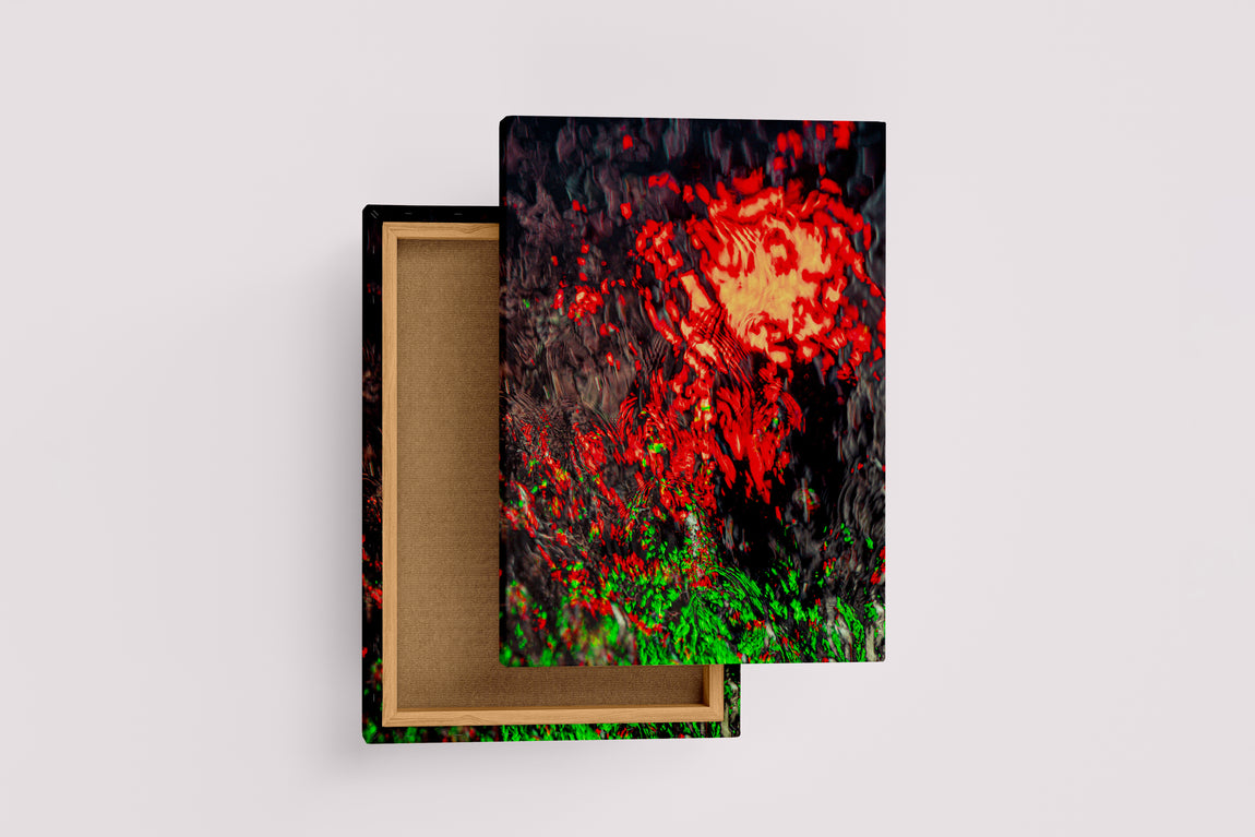 an abstract photo of bright red and green lights reflecting on dark, rippling water, abstract, art, kanvas tablo
