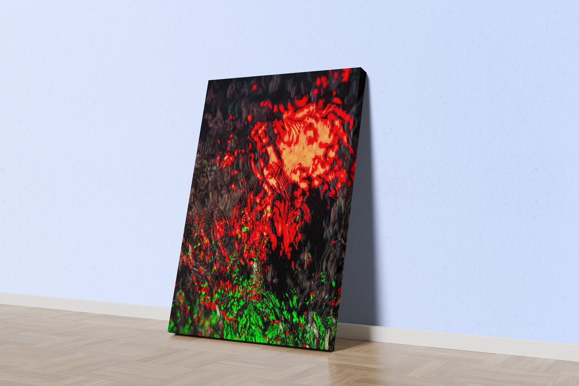 Parlak kırmızı ve yeşil ışıkların karanlık, dalgalı su üzerinde yansımasının canlı detayları yüksek kaliteli baskıyla öne çıkıyor. Bu görsel, mekanınıza derinlik ve hareket katan etkileyici bir atmosfer yaratır. Dayanıklı malzemeyle hazırlanmış baskı; uzun ömürlü renkler ve netlik sunarak dekorasyonunuza şıklık katar.