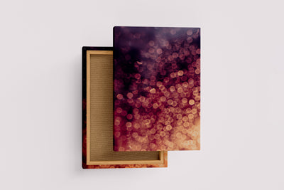 an abstract photograph of warm, golden and red bokeh lights on a dark background, abstract, art, kanvas tablo