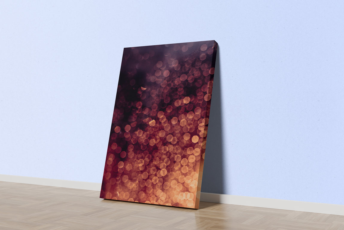 Sıcak altın ve kırmızı tonların karanlık zemin üzerinde oluşturduğu canlı bokeh ışıklar, mekâna derinlik ve zarafet katıyor. Yüksek kaliteli baskı teknolojisiyle üretilen görsel, detayları net şekilde ortaya koyarak her ortamın atmosferini zenginleştirir. Estetik ışık dokunuşları sayesinde modern ve sofistike bir dekorasyonun parçası olmaya hazır.