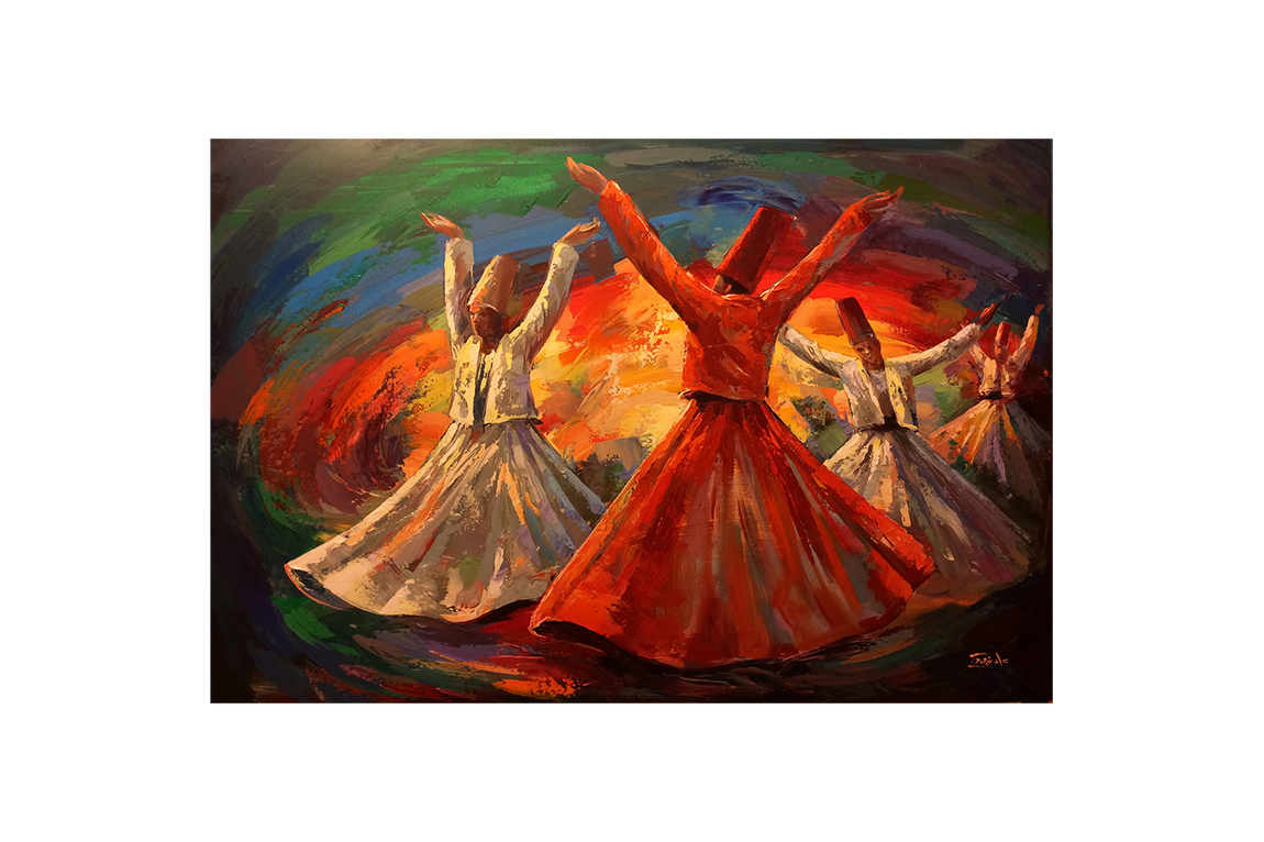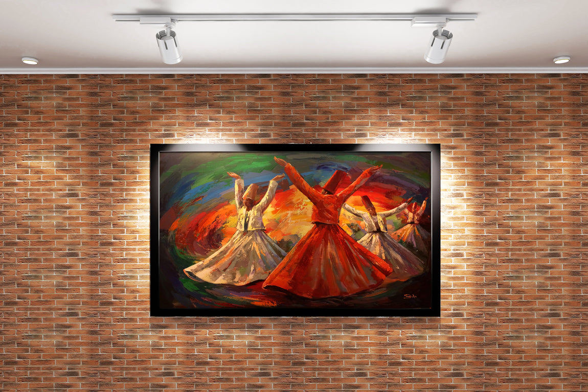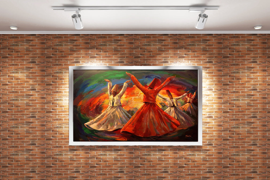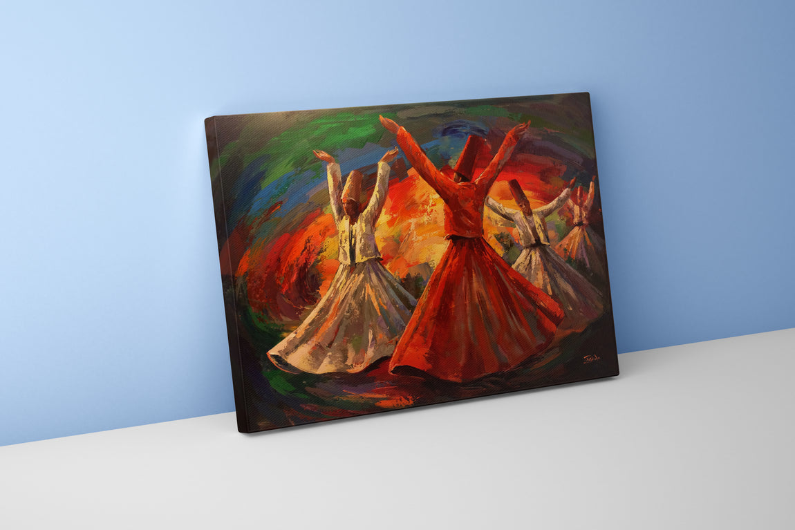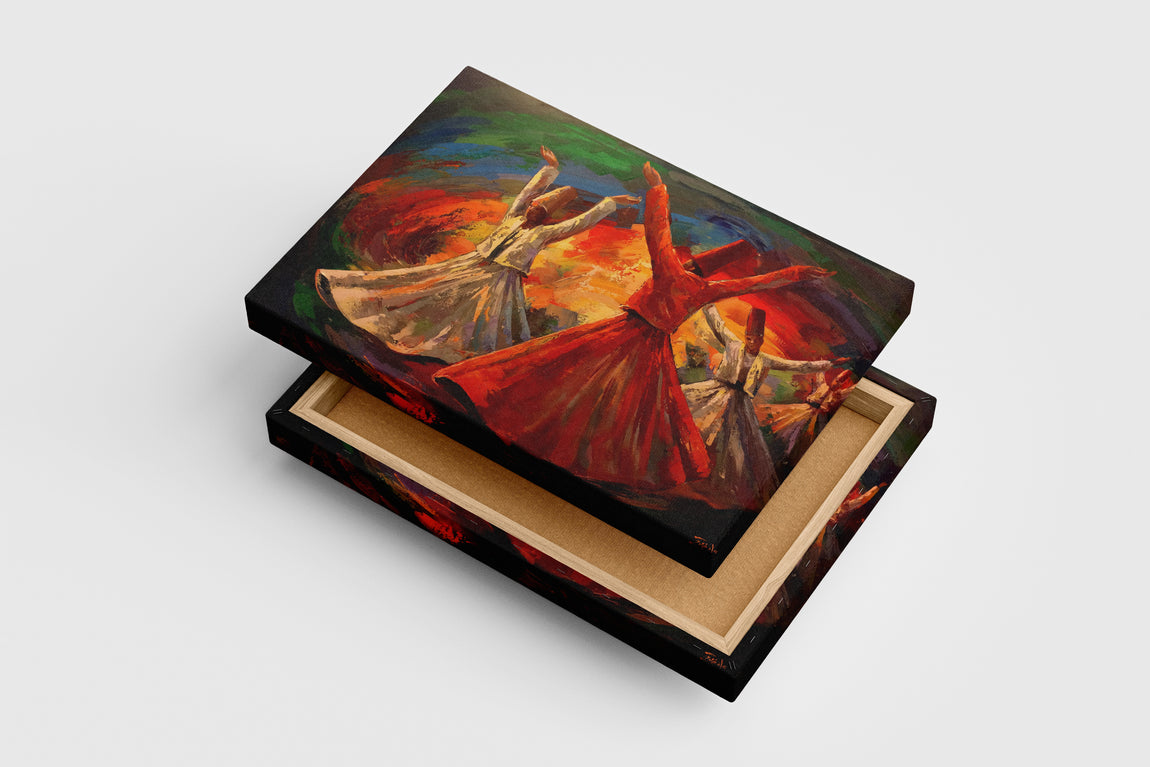 Semazenlerin dönerkenki duruşunu ve rengarenk dönüşünü yansıtan bu kanvas baskı, estetik bir atmosfer sunar. Canlı renklerin ve dokulu detayların etkileyici birleşimi, yaşam alanlarınıza enerji ve sanatsal derinlik katmak için ideal. Kaliteli baskı tekniğiyle uzun ömürlü ve canlı kalan bu eser, duvarlarınıza özgün bir şıklık getirir.