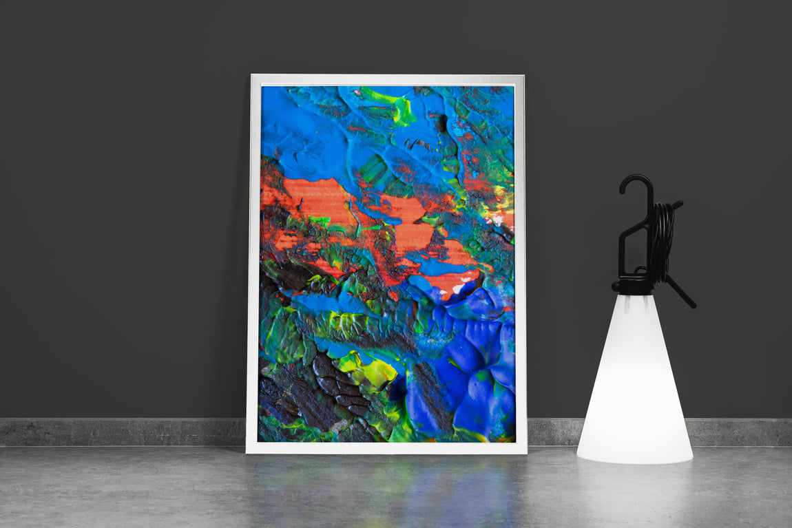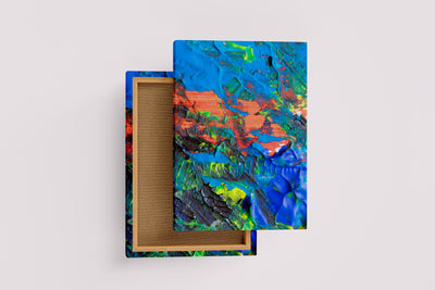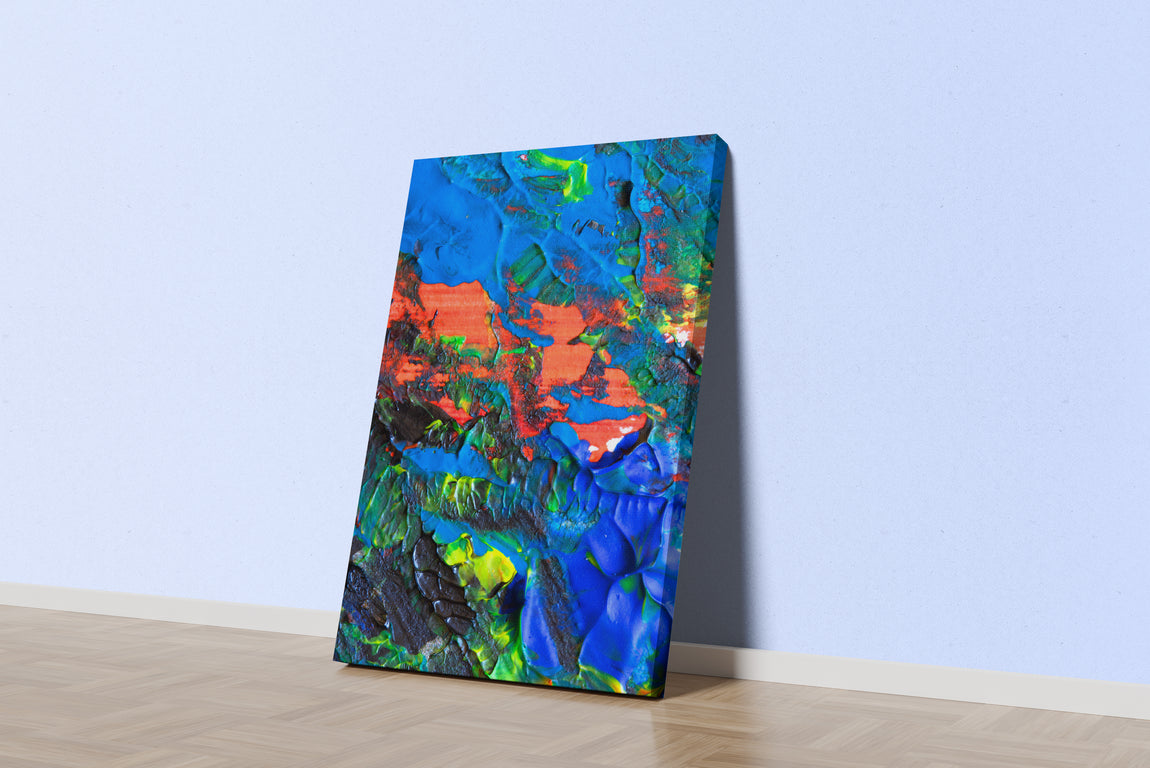 Canlı mavi ve turuncu tonların hakim olduğu bu baskı, zengin dokusuyla mekanınıza sanatın enerjisini taşır. Detaylardaki derinlik ve renklerin kontrastı, her bakışta farklı bir keşif sunar. Kaliteli baskı tekniği sayesinde uzun ömürlü ve göz alıcı bir dekorasyon seçeneği oluşturur.