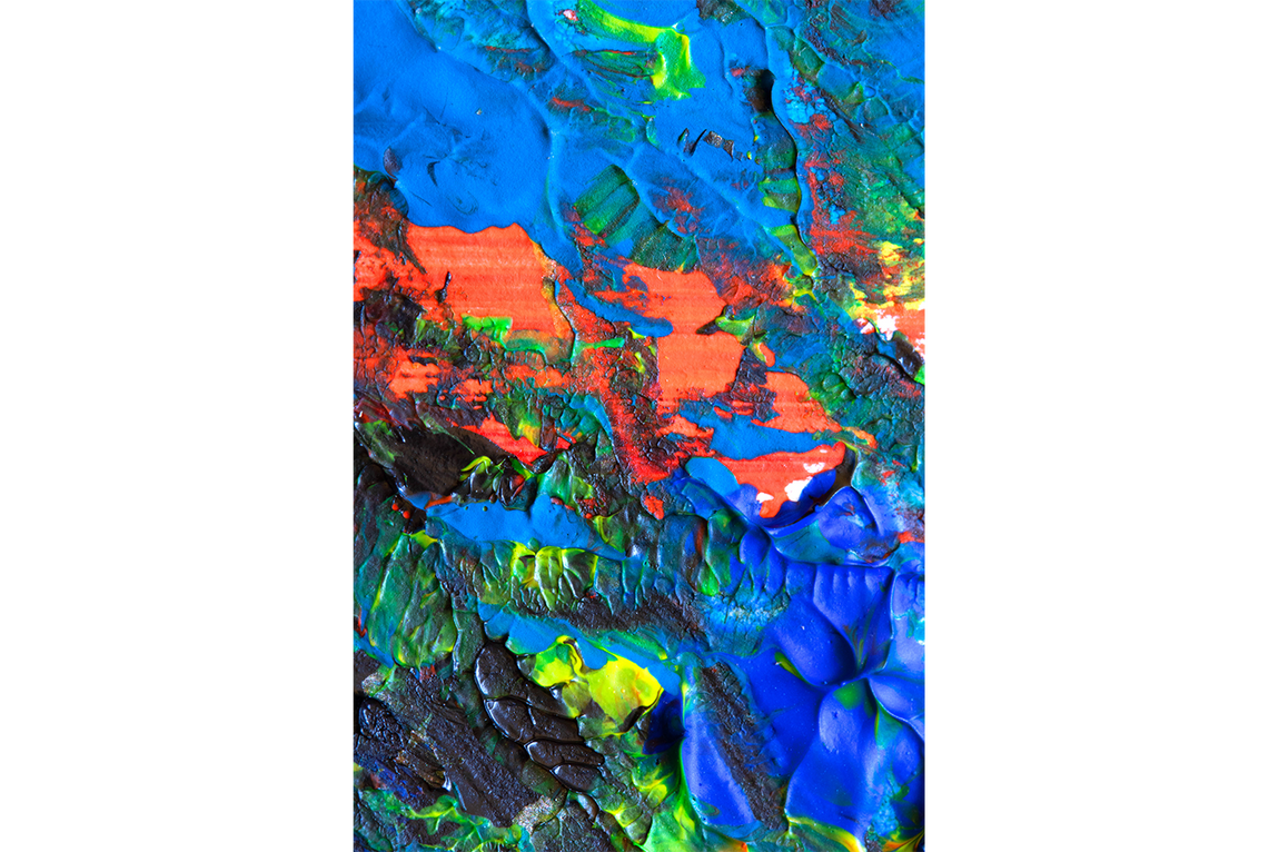 an extreme close-up of a heavily textured painting with vibrant blue and orange colors, abstract, art, kanvas tablo